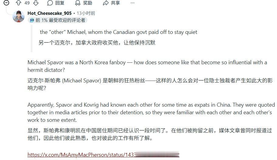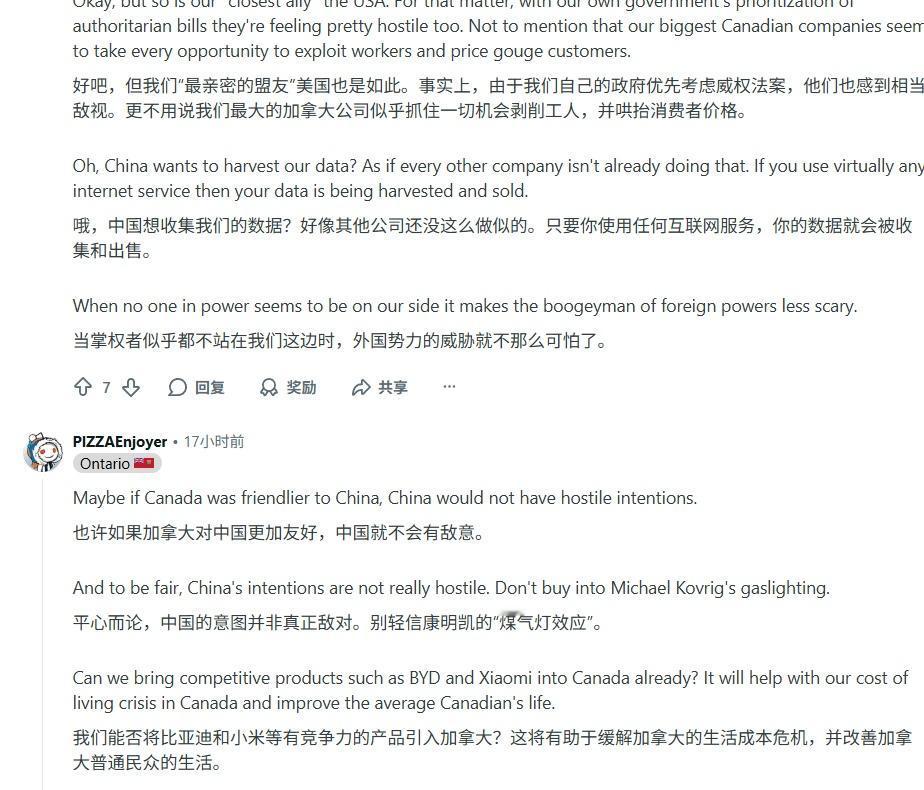 加拿大媒体还在说老中坏话。但是评论区就不一样了。 为什么截这个图? 两个迈克的问题,很早之前我在reddit就和加拿大人说过,那会的加拿大人傲慢的不得了,这些留言是昨天留的,就不用我说了,加拿大人自己在批判两个迈克。 两个迈克的故事很早加拿大人已经知道了。 但是仅仅在去年,加拿大人还不是这个态度, 今年他们就是这个态度, 不是因为道理变了,是形式变了。 这也是最近老中痛殴川普的时候,有相当多的韩国人搁那欢呼的原因。 因为韩国人对于川普勒索他们3600亿美元束手无策, 看到有人对付川普,无论如何也是高兴的。 讲道理,就有讲不完的道理。 形势变了,有些人会自己找借口。