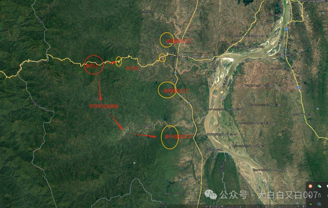 若开军奇袭缅军第16国防兵工厂,缅军的勃固战线岌岌可危 据若开媒体报道,若开军及其盟友10月14日在勃固省娘究山战场附近发动奇袭,袭击了乌西宾镇马通村附近缅军第16国防兵工厂的一个前哨据点—600号高地。该据点系负责包围第16国防兵工厂的数个前哨之一,若开军在早上9:05分发动攻势,历时三个小时占领该据点,缅军包括家属在内的30人被俘,40余人阵亡,缴获大量武器弹药。从战场态势来看,若开军似乎除了在正面公路沿线辛兰村一线开始反击缅军的进攻外,还开始沿山间小道迂回进攻缅军的兵工厂。目前缅军在勃固乌西宾镇战场附近分布着缅军第6,9,16三座国防兵工厂,均开始面临若开军的攻击。一旦缅军的勃固战线崩坏,缅军恐怕只能暂停其他部分战场的进攻,转而开始专心应对若开军的威胁。此外,若开军于10月15日发布了其占领纳特山沿线高地的首批战报,图片3中展示了部分被若开军缴获的武器。目前缅军为了救援纳特山溃逃的缅军,从山脚下津平炮兵基地出动300名援军企图接应溃散的缅军部队,目前双方仍在激烈交锋中。