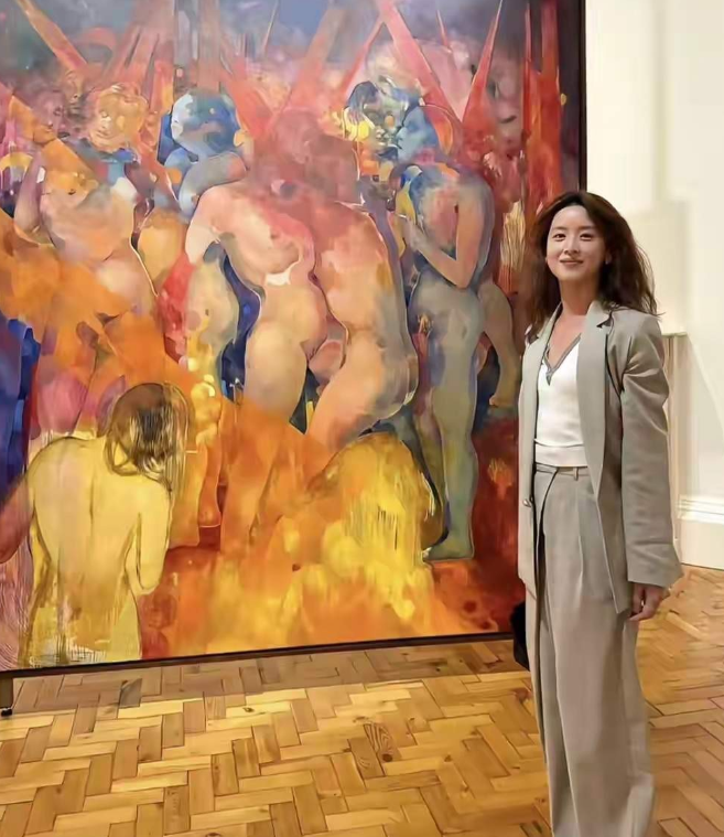 纯属好奇,没别的意思——章泽天在伦敦艺术展那组照片里,背后墙上挂的画作内容,她本人是否知道不太雅观呢?