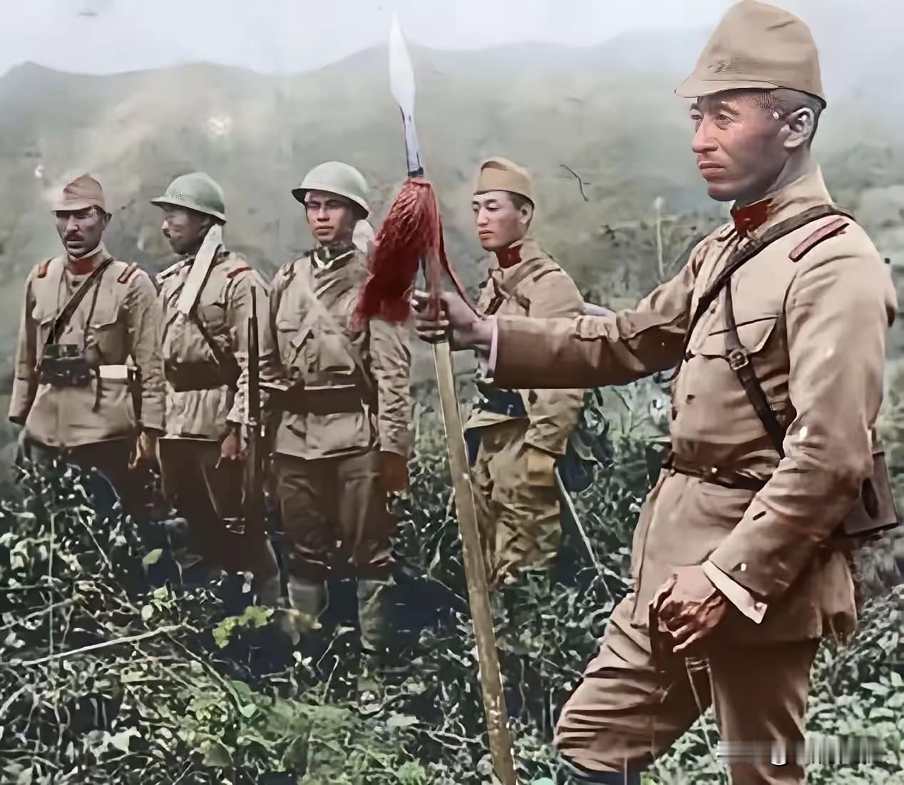 照片中这些日本鬼子手里拿的红缨枪,据说是从我们抗日英雄手中缴获来的,由这张照片不难看出,当年在抗日战争时期,从武器装备上看,当时日本鬼子的武器是非常先进的,而我们的抗日英雄们,还在使用着这些最原始的、冷兵器时代的武器,从武器装备上看,我们和日本鬼子是有代差的,我们的抗日英雄就是凭着一身胆气,一身血性,与日本鬼子进行了殊死的决战,最后我们胜利了!
