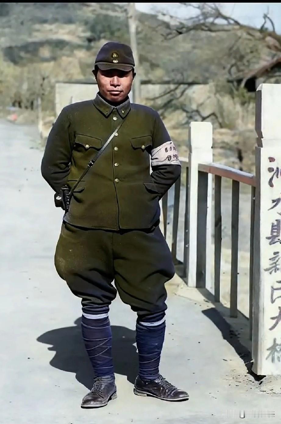 这个日本鬼子不仅身材矮,而且好像还长了一双罗圈腿,日本鬼子的穿着打扮还是有一定特点的,他们穿的衣服好像上衣都比较短小,裤子特别的肥大,而且小腿部位都扎着绑腿,不知道扎绑腿的作用是什么,现在很少看到有人扎绑腿了。这个日本鬼子还穿着一双皮鞋,在那个年代,穿皮的人是比较少的。