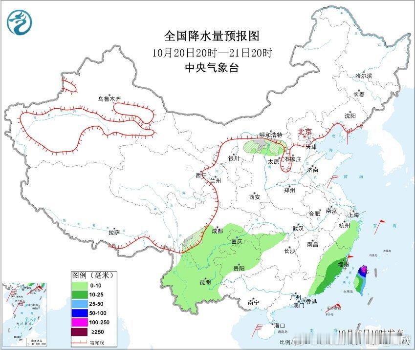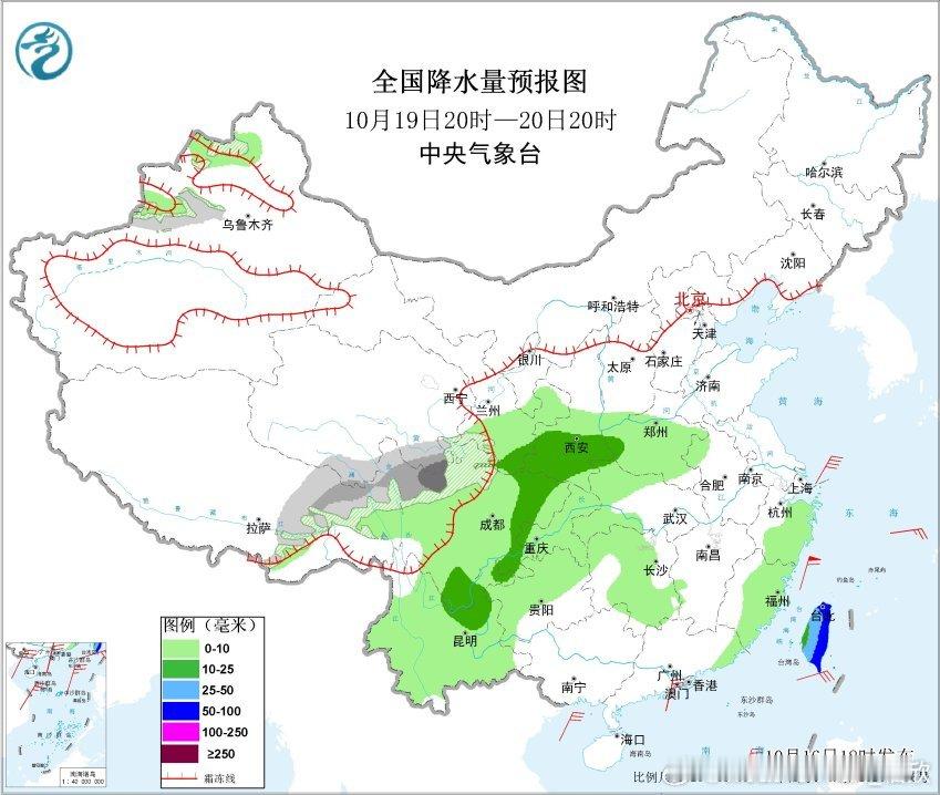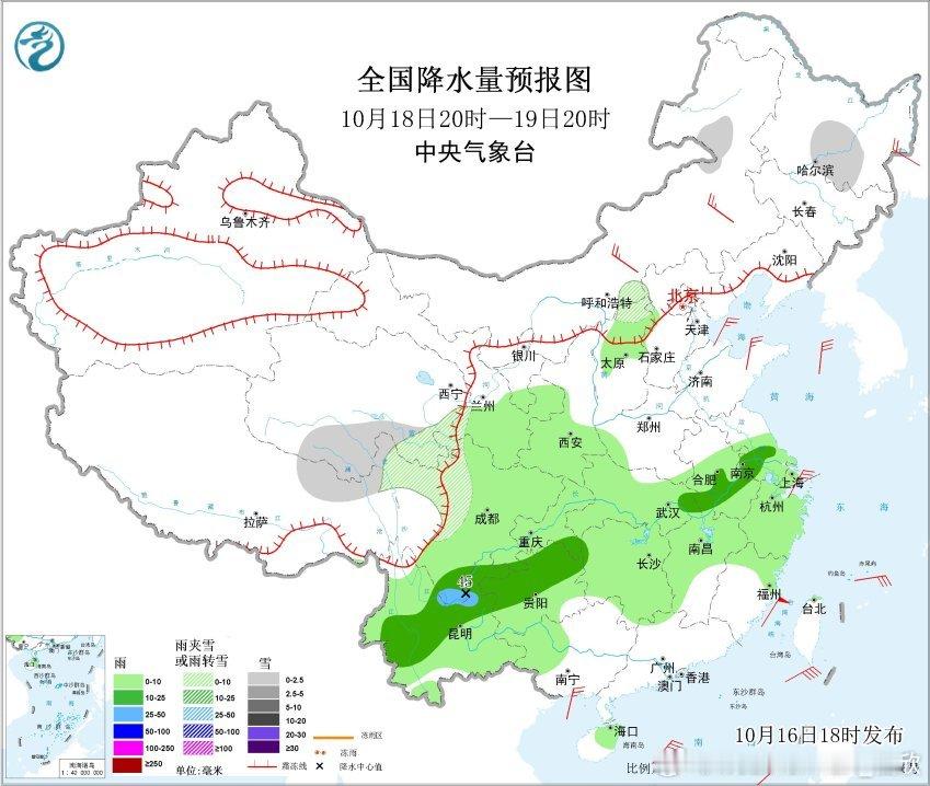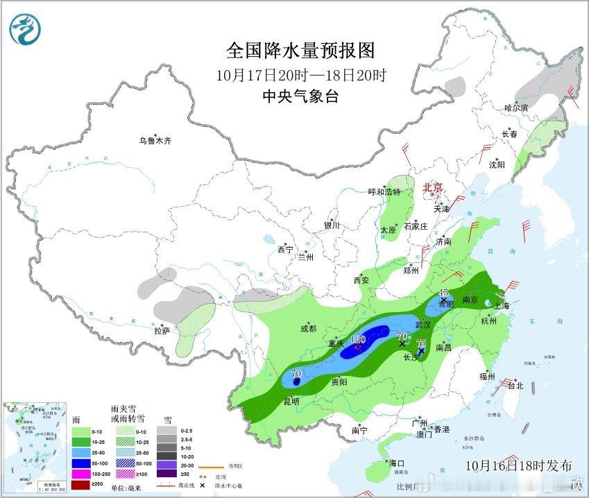 10月16日20时至17日20时,内蒙古东部、东北地区中北部、甘肃中部、青海东部和南部、川西高原北部、西藏东北部等地部分地区有小到中雪或雨夹雪,其中,内蒙古东北部、青海东南部、甘肃西南部等地部分地区有大雪,局地暴雪(10~13毫米)。四川东北部、重庆西部和北部、陕西东南部、湖北北部和西部、河南大部、安徽北部、江苏北部、山东南部以及云南西部等地部分地区有大到暴雨。