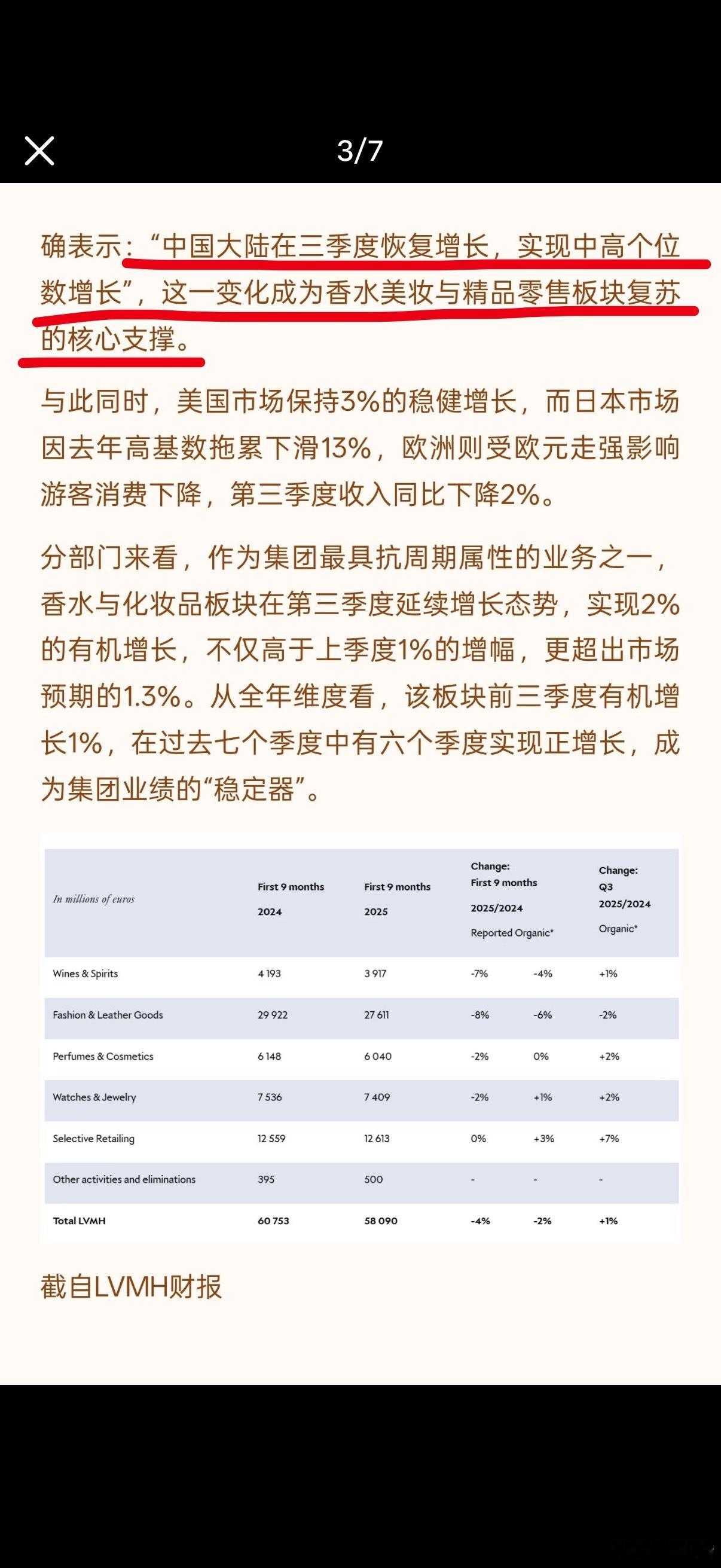 LVMH发布2025年第三季度,财报显示中国大陆在三季度恢复增长,其中Dior表现尤为突出。
