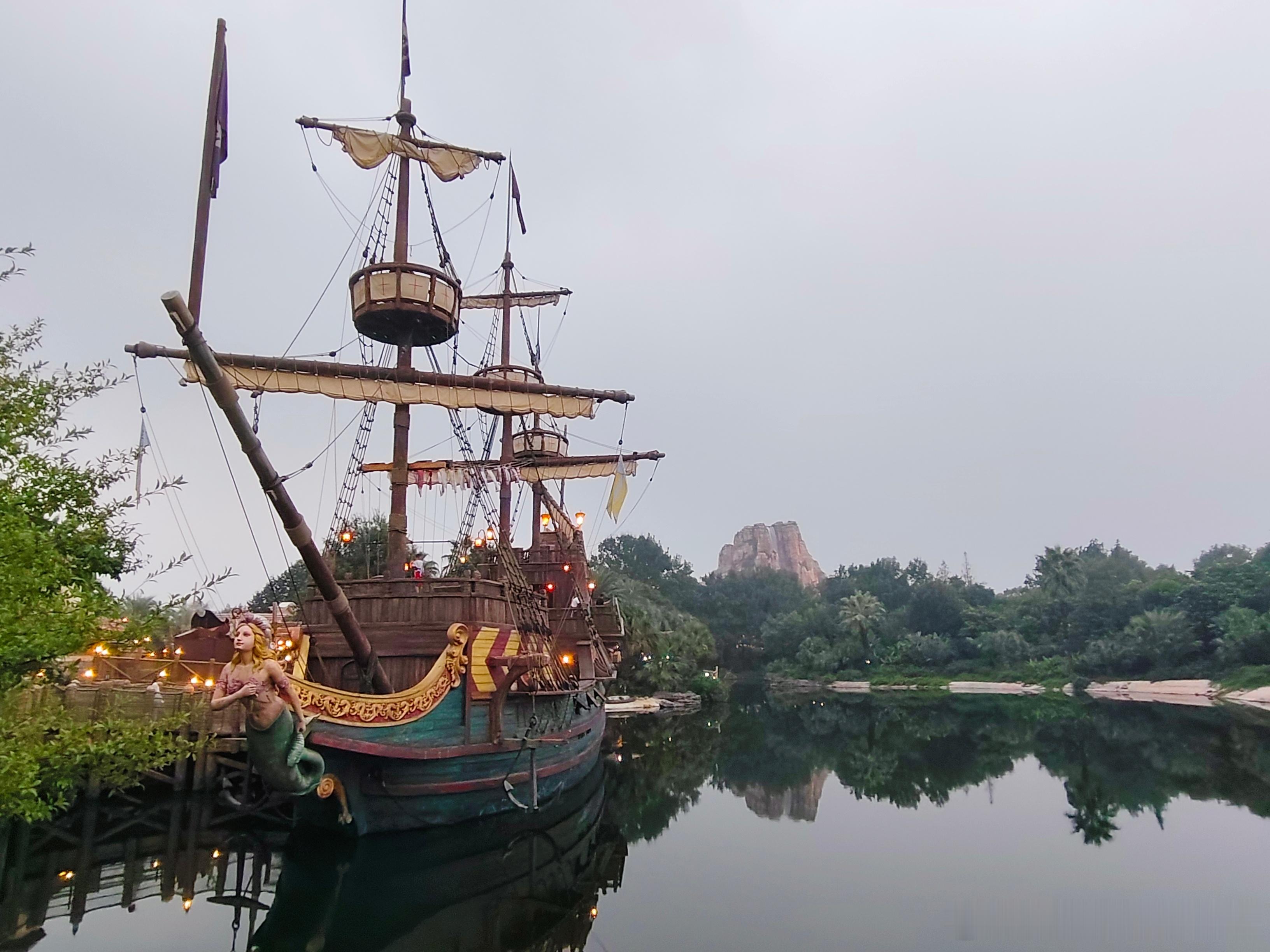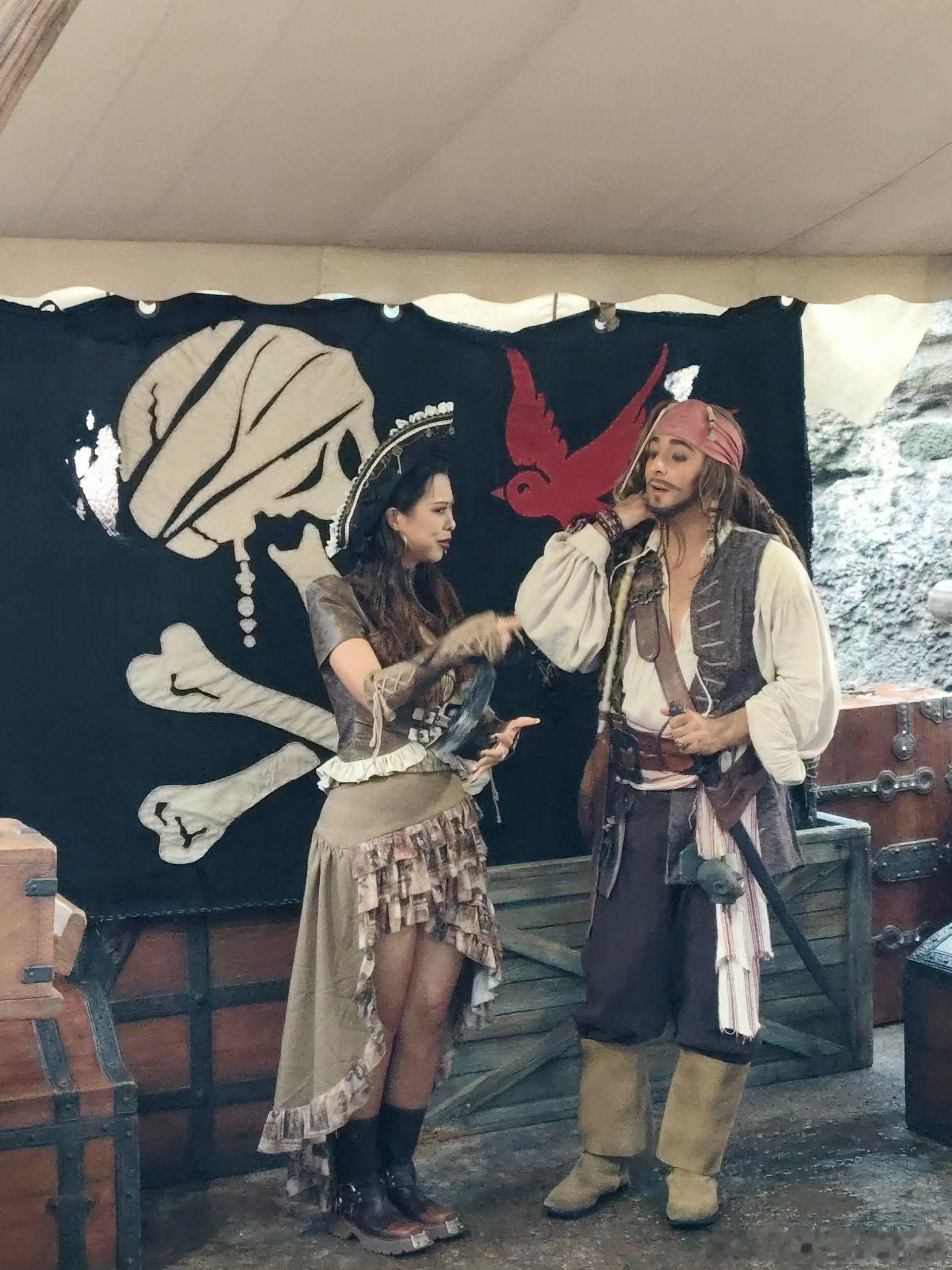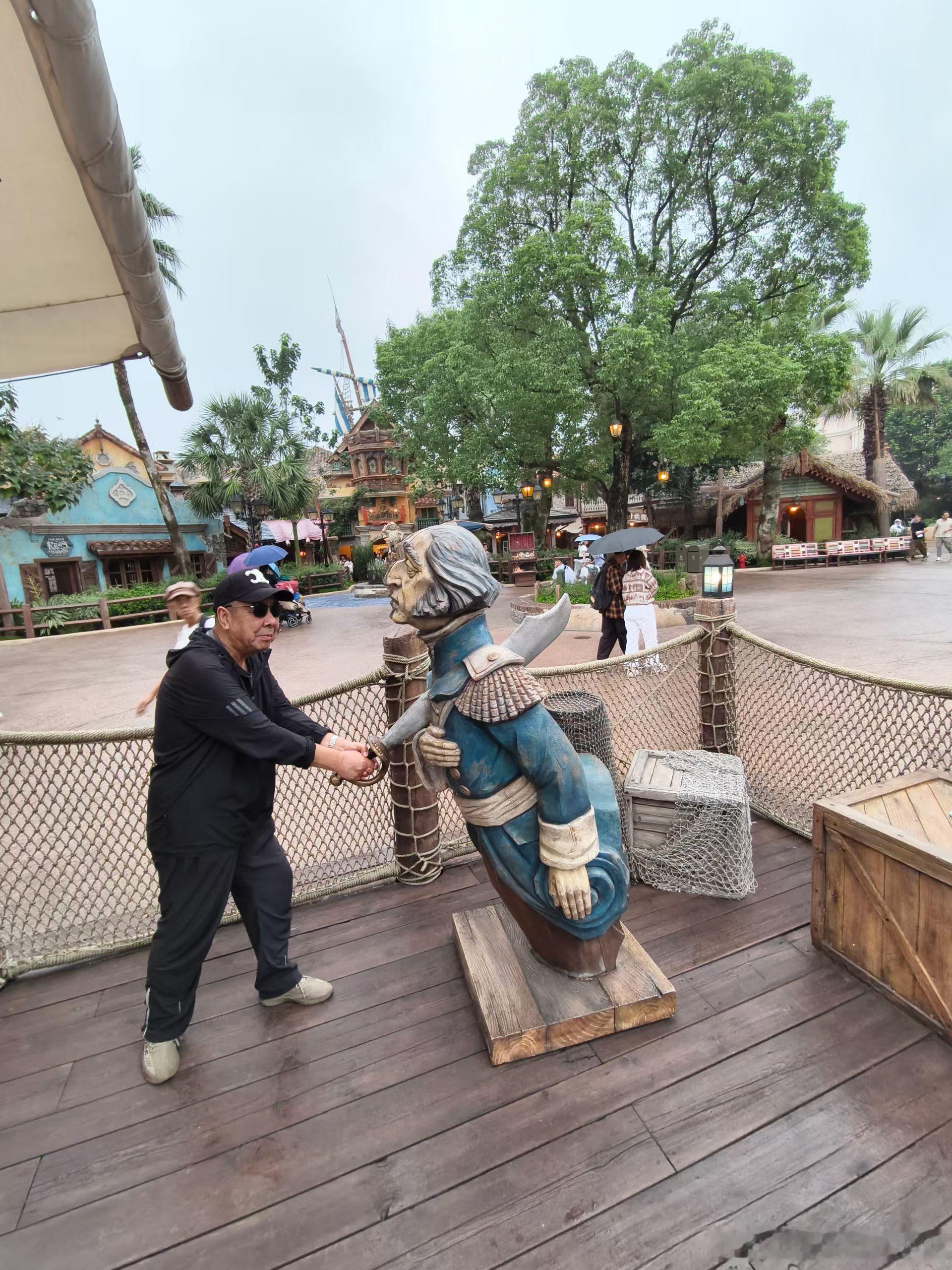 细雨濛濛,时下时停;【宝藏湾】里杰克船长还在忙着招兵买马。。。海妖号上中国🇨🇳老汉刀劈海盗黑胡子!这可是【加勒比海盗🏴☠️】中的经典狠角色,曾经以标志性的黑色络腮胡和凶狠形象著称;但最终没有逃脱正义的惩罚![偷笑]这几天老汉发现乐园里小本子🇯🇵的人见多,不知隔壁岛国放的什么假?感觉它们是否在岛上压抑惯了,乍一放开竟有些不知天高地厚了。听女儿和她的朋友说在与七宝互动中,它们占用互动时间过长,叽叽喳喳,稀稀哈哈,大笑大叫,缺乏规矩和公德,给大家印象极坏。。。[嘻嘻]