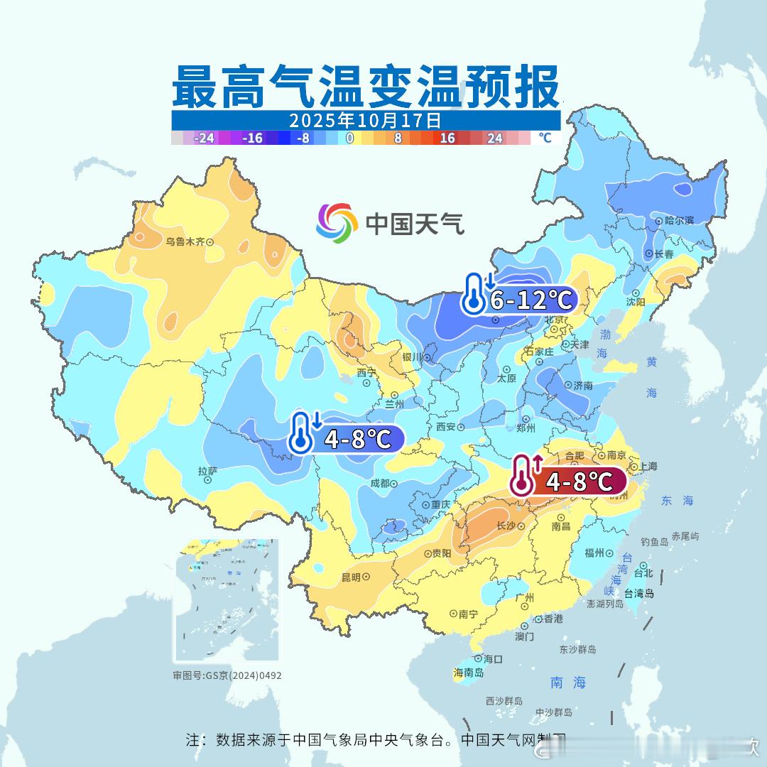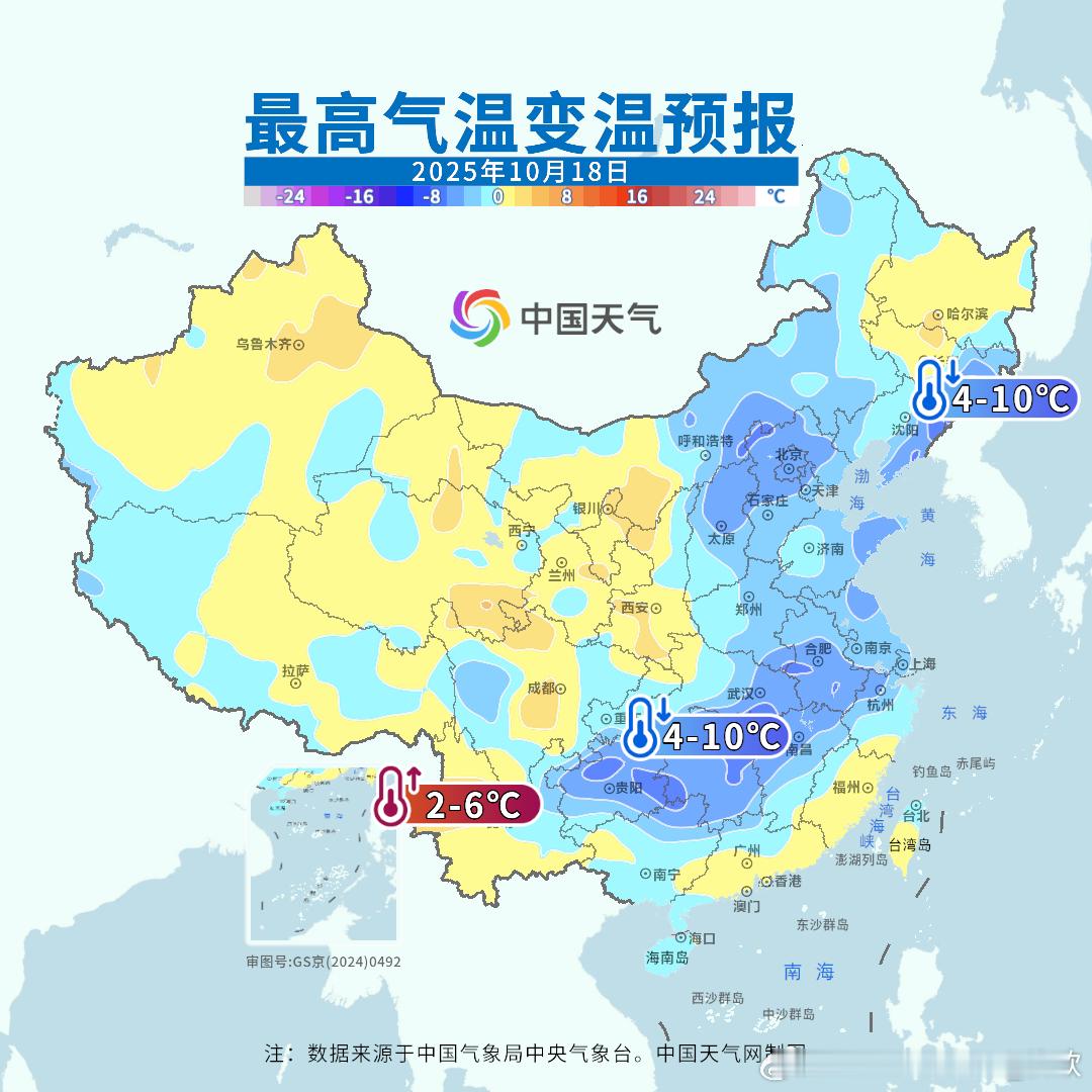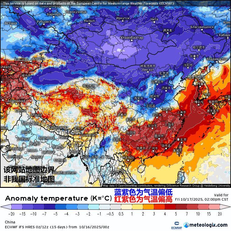 【气温】今天广东韶关35.4℃,只有这一个站点出现高温。今天广西雁山34.4℃,只有这一个站点打破10月中旬最高气温纪录。明天南方在冷空气到来前,气温可能还有个小回升。但之后冷空气会使得南方告别暑热。而且因为冷空气源源不断补充,未来我国大部地区气温偏低时间长,偏低幅度大,部分城市提前感受11月的冷。