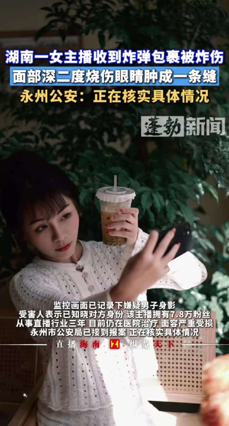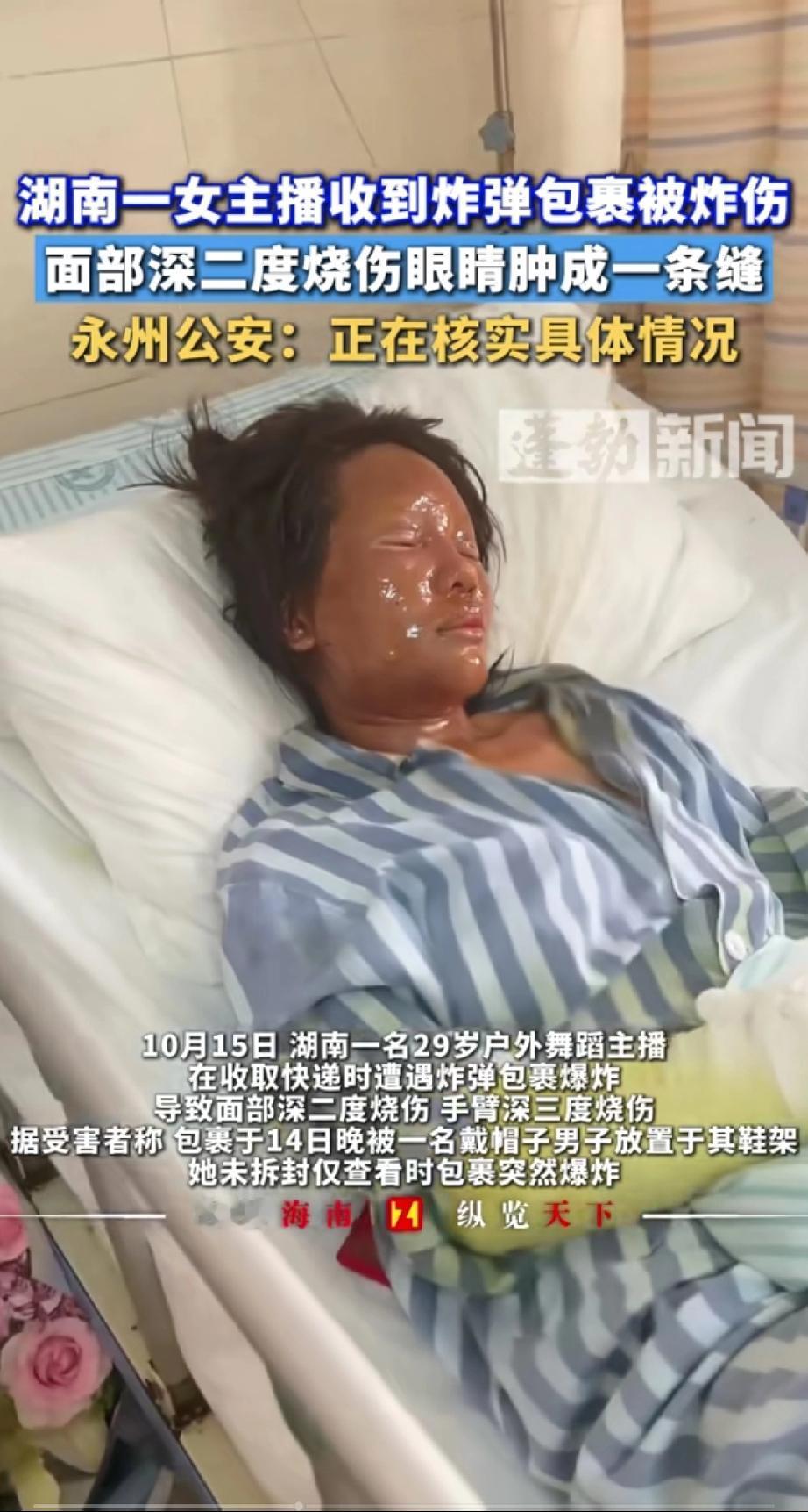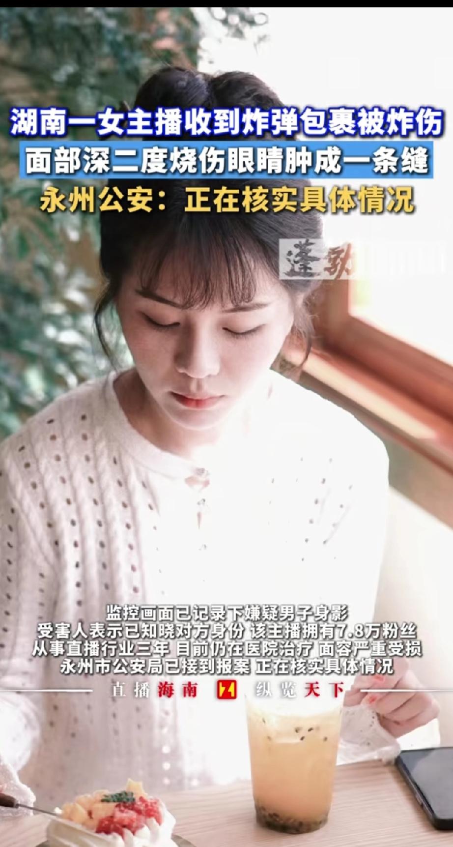 来路不明的快递你还敢拆吗? 湖南一“美女”主播,被类似“恐怖分子”式的快递📦包裹袭击。 美女近日拿起放在门口鞋架上的不明包裹,拆开看时,突然爆炸燃烧,整个面部和双手臂都被烧伤,还好没有生命危险,但这天使般的容颜,哪里禁得住这样的摧残。 这美女脸肿的像个大猪蹄子,应该严惩凶手。 因为,烧起来可是有把整栋楼烧掉的风险,到时候,伤亡的可不止一两个人了。后果不堪设想! 大家觉得行凶者刘某强该当何罪? 不明来历的快递 快递 高清美女