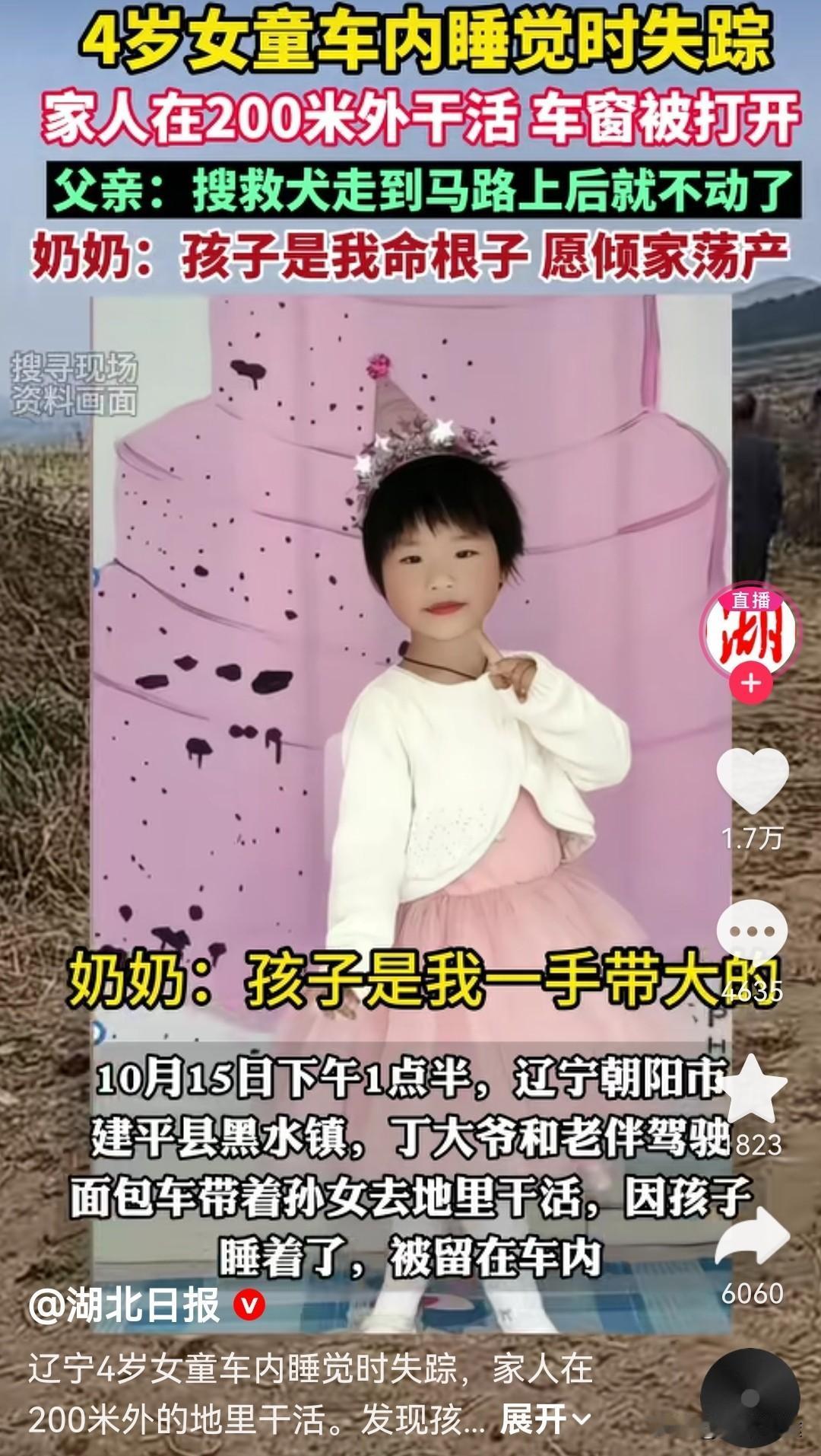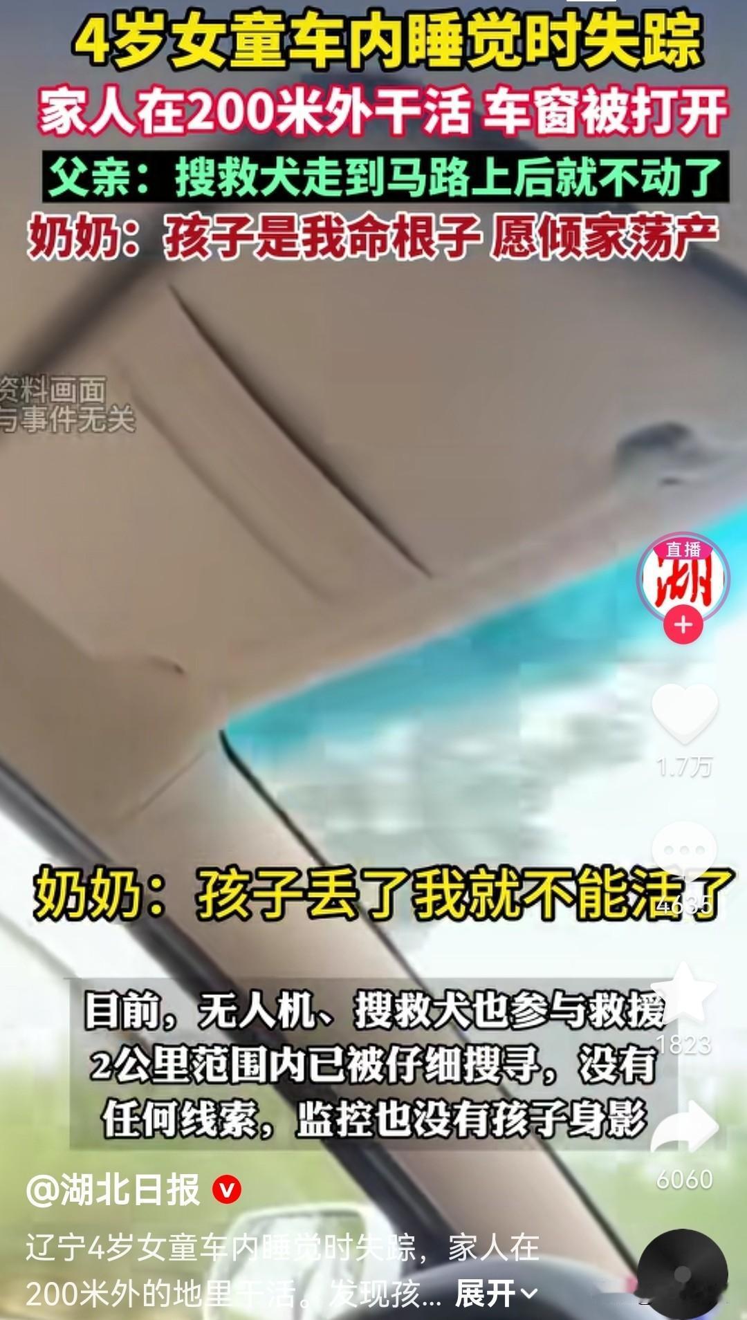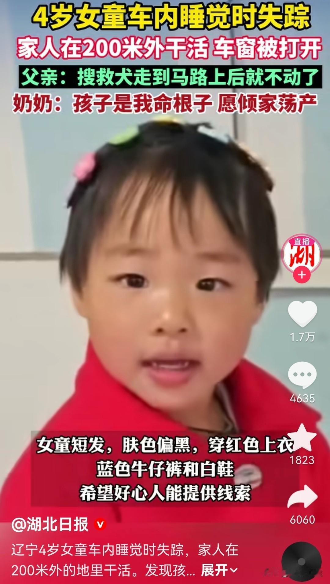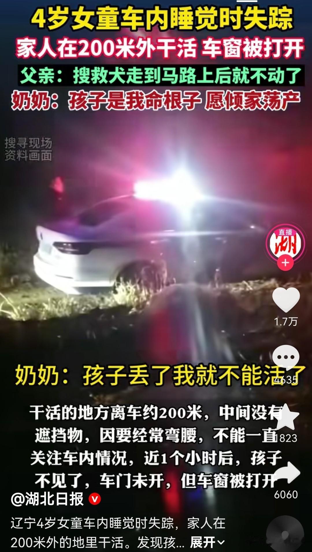 熟人作案的可能性极大。这种田间地头只有当地人,外地人可能性太小。 如果爷爷奶奶说的是实话,那孩子自己走丢的可能性不大,四岁多的孩子也懂事了,最起码她找不到大人她会大哭大喊,200米听不到?又不是城市里环境嘈杂会影响听力!被人抱走可能性大一点,还有就是爷爷奶奶所说的20分钟,可能不止20分钟,老人意识里的没多大会儿,最起码一个小时以上!
