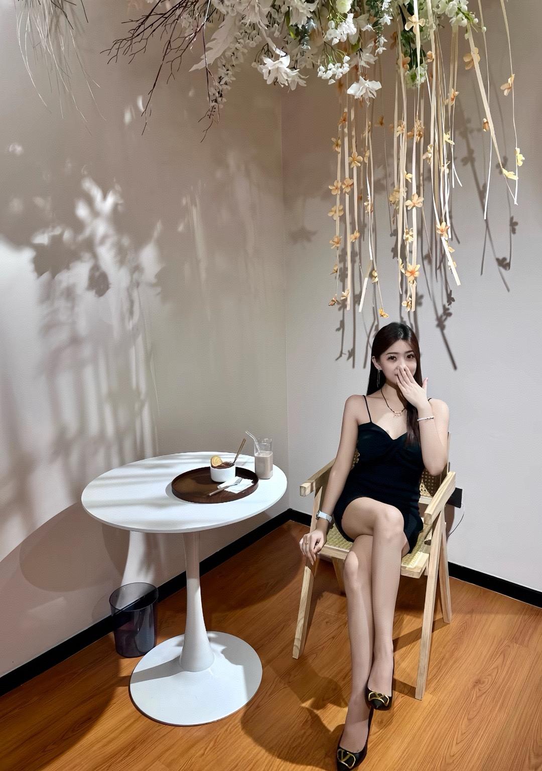 优雅黑裙少女,静坐现代客厅,享受宁静时光。