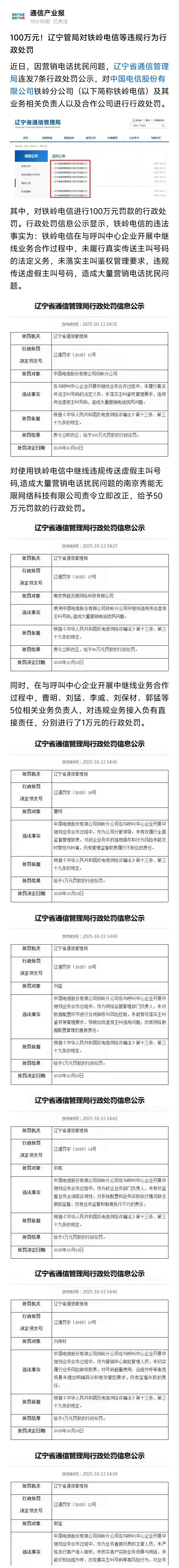 营销扰民,中国电信分公司被处罚100万!运营商