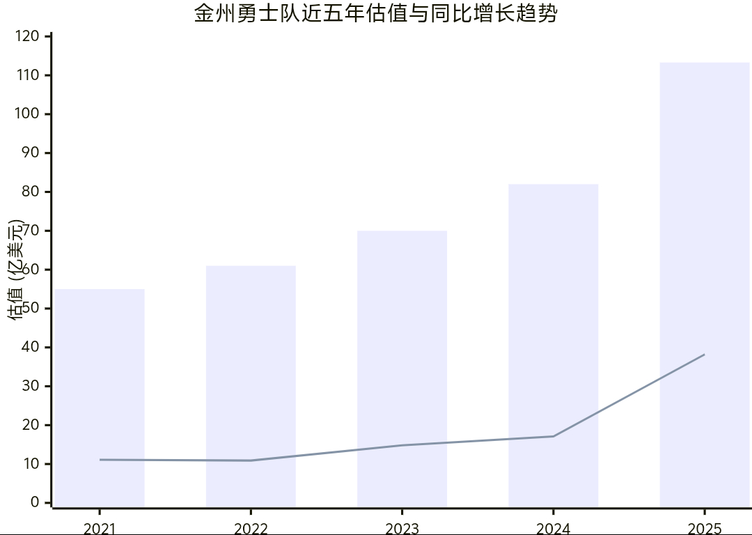 2021年-2025年 不仅连续五年位居NBA第一,在全球所有体育球队中也仅次于NFL的达拉斯牛仔队(128亿美元)。