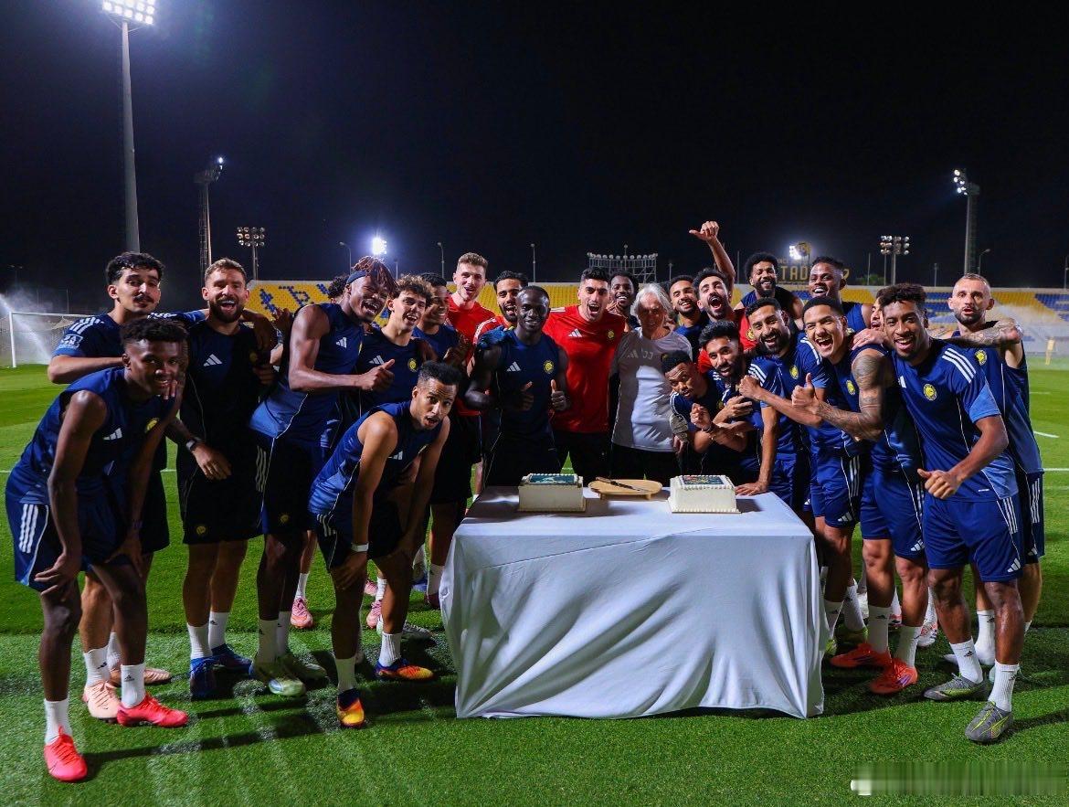 利雅得胜利全队庆祝塞内加尔和沙特获得2026年FIFA世界杯参赛资格。