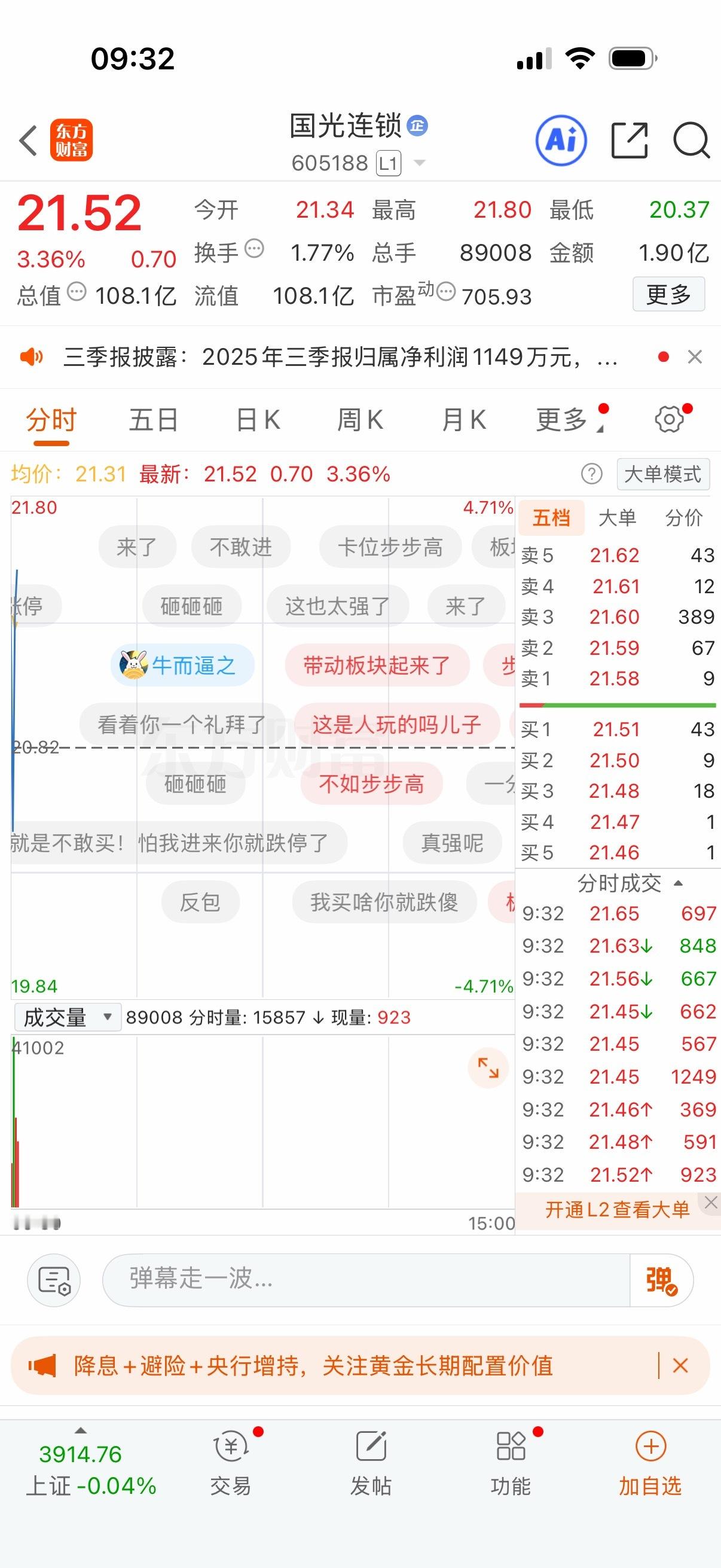 我实盘说的国光连锁昨天洗的差不多了今天能涨停粉丝们评论528我要发 让我看看你们