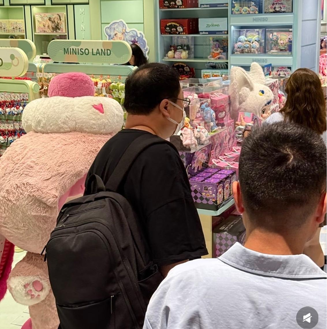 再有钱也得排队!上海miniso偶遇罗永浩,他竟然站在门外,排队等着进去逛,老罗