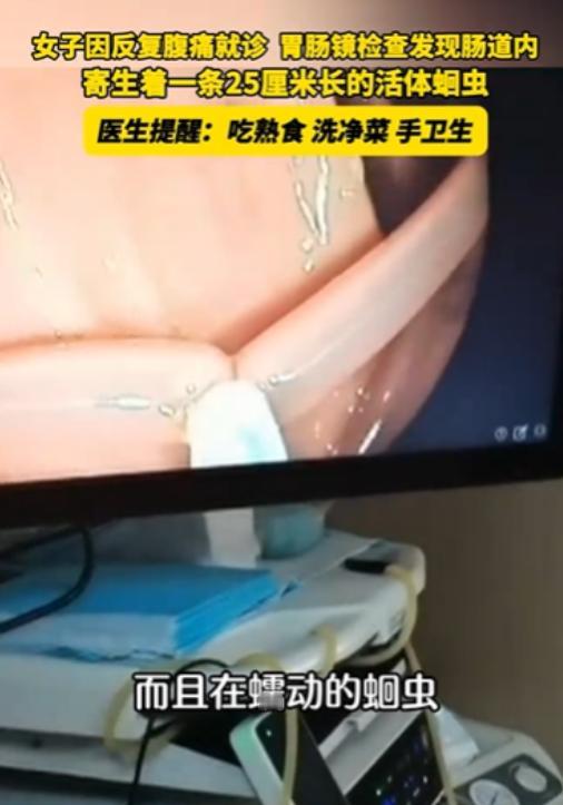 近日报道,浙江金华, 一女子肚子疼得厉害,以为是拉肚子,去药店买了点止泻药,扛了三天。没成想,肚子疼得越凶,腰都直不起来了才打车去了医院。医生一检查,镜头里竟出现条扭动的活虫子,取出来足足25厘米长!女子被吓得脸发白,连问“这东西在我肚子里待了多久?” 四十多岁的王女士(化名)一开始肚子疼,以为是普通拉肚子。自己去药店买了止泻药,硬扛了三天没去医院。没想到疼痛越来越重,半夜能疼醒,最后腰都直不起来。 到医院做检查时,内镜镜头里的画面让所有人吃惊。一条白色的活虫子在肠子里扭动,医生十分钟就取了出来。虫子放托盘里还在动,25 厘米的长度把王女士吓得脸发白。 医生一问才发现,她的饮食习惯问题真不少。经常买外面的凉拌菜,家里洗菜就随便冲两下。玩完手机不洗手就拿东西吃,这些习惯早埋了隐患。这趟住院花了不少钱,后续还得吃药调理。 网友看了都觉得发毛,有人刚吃了生拌牛肉赶紧停嘴。还有人想起小时候吃的宝塔糖,那时候小孩都要集体打虫。 以前小孩集体打虫,是因为生活条件跟现在不一样。那时候厕所卫生差,粪便里的虫卵容易污染水土。小孩卫生习惯不好,手上沾了虫卵就吃进肚子,蛔虫很常见。 现在家家户户有抽水马桶,喝的不是开水就是瓶装水。大环境干净了,蛔虫很难大面积传播,打虫就少见了。 但王女士的事说明,大环境干净不代表个人能马虎。最关键的问题出在她家的厨房,生熟案板是同一块,生肉上的虫卵就这么跑到了直接入口的熟食上。这种交叉污染,正是很多人容易忽略的风险。 “不干不净,吃了没病” 的老话,现在真不能信了。准备生吃的菜,得先泡一泡再用流动水仔细洗。 肉和水产一定要彻底做熟,猪肉牛肉不能带血丝。鱼虾要煮到肉能轻松脱壳,才算是真正熟透了。 厨房的刀和案板必须分开,生熟处理绝对不能混。碰过生肉生鱼后,一定要用肥皂把手上的细菌洗掉。 王女士的情况并不是个例,类似新闻这些年常有报道。醉蟹里可能藏着肝吸虫,没煮熟的福寿螺有广州管圆线虫。涮肉时间太短,也可能把绦虫吃进肚子,每种都很危险。 其实预防寄生虫感染,就靠几个简单的习惯。勤洗手、生熟分开、食物彻底做熟,一点都不复杂。别嫌麻烦,这些习惯能帮你避开不少健康风险。 你家的厨房是生熟案板分开用的吗?平时处理食材还有哪些习惯?欢迎在评论区聊聊。觉得有用的话,也可以转发给家人朋友提个醒。 信息来源: 中国蓝新闻——近日,浙江金华,浦江县人民医院消化内科接诊一病例,40多岁的王女士因反复腹痛就诊,检查发现其肠道内寄生着一条活体蛔虫。