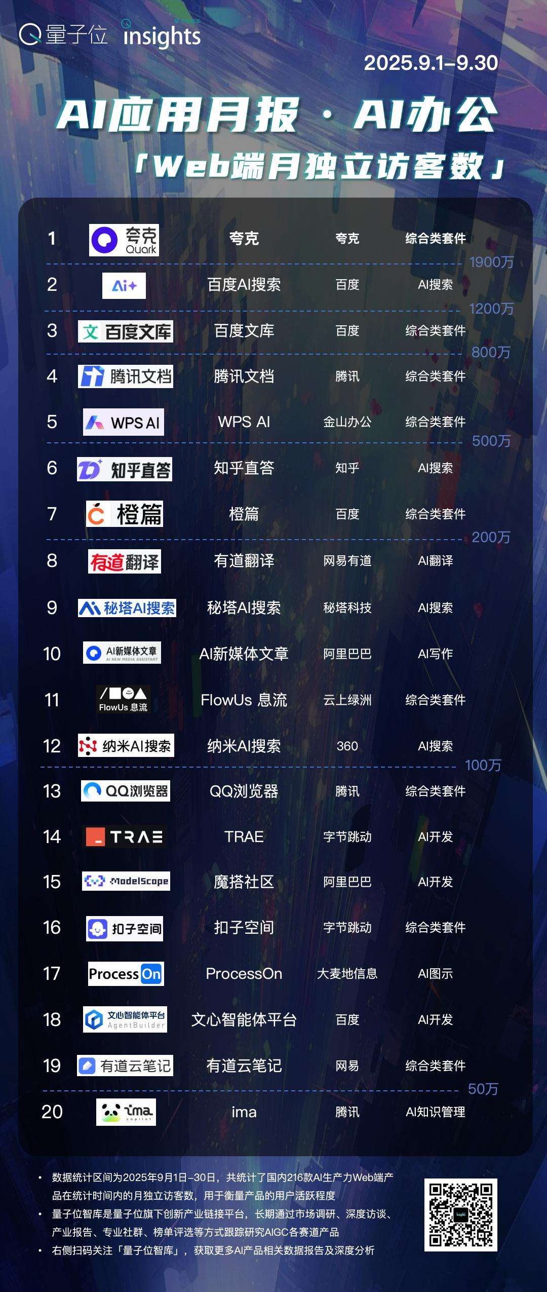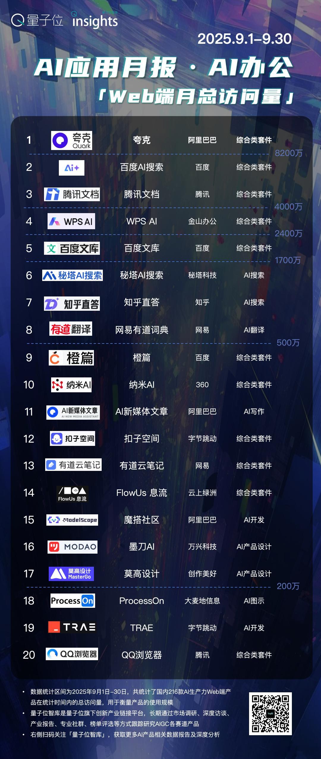 AI办公/效率赛道的Web端和APP产品,9月份最新数据出炉。