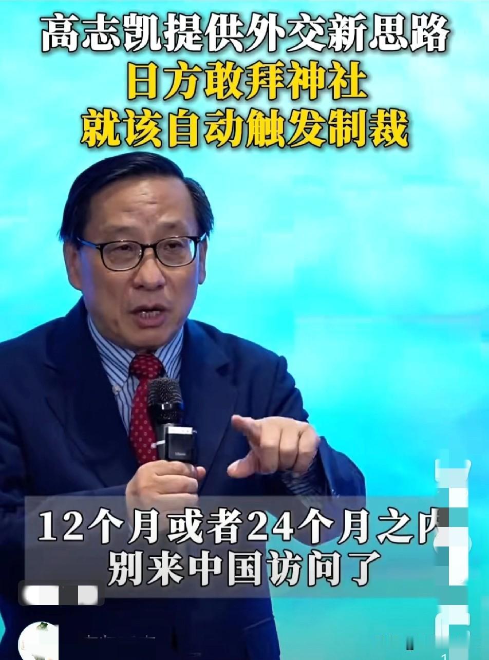 高志凯教授的建议你同意吗?对于日本肆无忌惮去参拜神灶的政客,我们要从道德外交改成法治外交。 高志凯教授在一次演讲中提到日本政客参拜神灶,他说我们一直都是表示抗议和谴责,但这些抗议和谴责都是道义上的事,对他们的参拜行为没有压力。 我们可不可以换个思路,把道德外交换成法治外交。就是做出一个规定,对一些高级别的日本政客,列一个名单,对于名单上的人去参拜神灶,我们自动的对他们以后果。比如他去一次,就12个月或者24个月不能来中国访问。 对于高教授的提议,你认为有可操作空间吗?确实现在的抗议和谴责看上去收效不大,他们的政客还是想去就去。如果出台这样的规定,会不会给他们造成一些压力,再想去拜的时候要老先考虑后果。