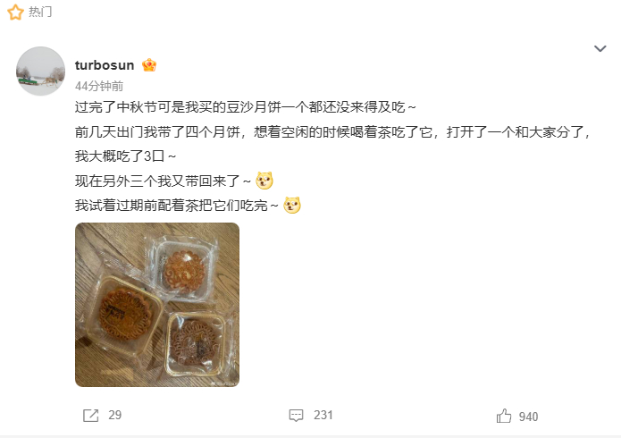 孙俪过完了中秋还没吃月饼,错过中秋月饼的小遗憾透着日常忙碌,孙俪过完了中秋没来得及吃月饼,这样的经历也让大众感受到真实的生活状态。孙俪过完了中秋没来得及吃月饼孙俪过完了中秋还没吃月饼