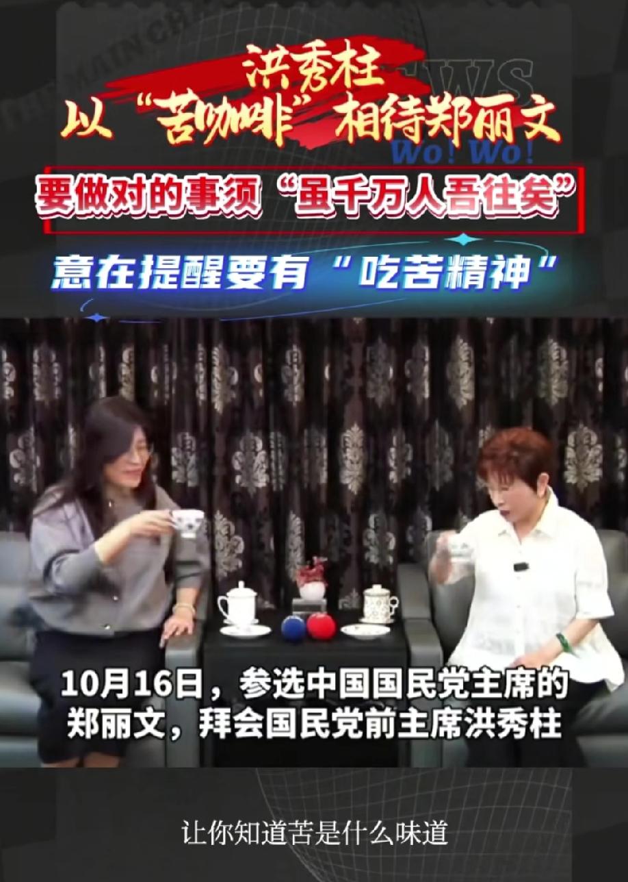 郑丽文拜见洪秀柱,洪秀柱两个动作教育郑丽文。 国民党主席选举倒计时,郑丽文上门拜会,柱柱姐没整虚的,直接把桌上点心撤了,换上杯无糖无奶的苦咖啡。嘴上说着“要习惯吃苦”,其实藏着更深的意思——坐那个位置,甜的轮不上,难的少不了,更得守住该有的立场。 后来郑丽文说懂了“苦尽甘来”,还记下了“宠辱不惊”四个字,这才没白费柱柱姐的用心。比起那些虚头巴脑的场面话,这种用行动敲警钟的前辈,才真叫护着后辈走正道。 话说回来,政治里的“苦咖啡”从来都不好咽,你觉得这份告诫里最戳人的是哪点?