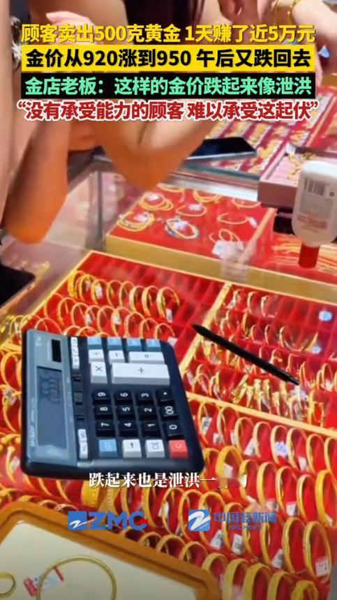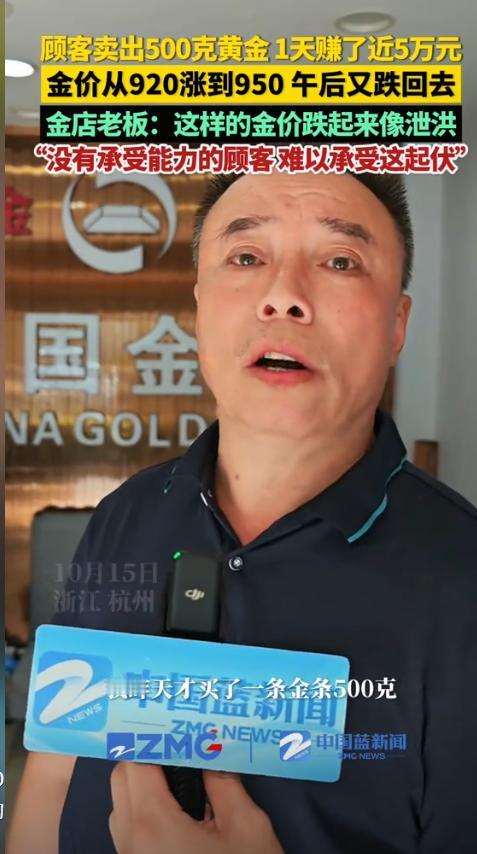 浙江杭州,顾客为了赚块钱,直接买了500克黄金,第二天就卖了,仅仅1天时间,就赚了近5万元,但是,金店老板也说了,这个金价上午920,之后涨到950,午后又跌回去920。所以,金店这样的金价跌起来像泄洪,没承受能力的,难以承受这起伏! 据中国蓝新闻10月15日报道,这笔钱赚得看似轻松,背后却是一场惊心动魄的博弈,这位顾客并不是一时兴起。 据说,他早就盯上了黄金市场,在金价还相对平稳,低于920元一克的时候,就悄悄地囤积了这半公斤的黄金。 他没有急于出手,像个有耐心的猎人,静静地等待着最佳时机,机会在2025年10月14日那天降临。 当天的黄金市场毫无征兆地开始躁动,早盘的金价像被注入了强心剂,从920元一克的价位一路向上猛冲,短短几个小时内,就触及了950元一克的高点。 这是一个稍纵即逝的窗口,市场的狂热情绪达到了顶峰,这位顾客没有丝毫犹豫,果断地抓住了这个顶峰,立刻决定抛售。 等到第二天交易完成,扣除所有成本,近五万元的纯利润稳稳地落入了口袋,金店的老板见惯了风浪,但提起这笔交易,还是忍不住啧啧称奇。 他说,这人的时机把握得太准了,多一分贪婪,晚一秒出手,结果可能就天差地别,因为就在他成功套现的14日当天下午,金价的走势就来了个180度的大转弯,像坐上了失控的过山车,从950元的高位急速俯冲,又跌回了920元附近。 那一天行情的上下震荡,足以让任何一个身在其中的人心惊肉跳,这场国内金价的剧烈波动,源于国际市场的疯狂。 就在14日当天,国际金价以一个惊人的数字刷新了历史记录,市场的热度瞬间引爆,然而,这种狂热来得快,去得也快。 仅仅一天之后,国际金价就掉头向下,引发了国内市场的一片恐慌性抛售,有人在这场风暴中赚得盆满钵满,自然就有人被巨浪拍得晕头转向。 就在那位顾客得意离场的同时,店里的另一位老顾客却是一脸愁容,他之前看着别人炒金赚钱,心里发热,也跟着买入了200克。 没想到,他成了那个站在山顶上的人,刚买入金价就开始下跌,接下来的三天,他每天都来店里踱步,脸上写满了焦虑,见到人就问行情。 最后,因为家里等着急用钱,他再也耗不起了,只能选择割肉离场,亏了两千多块钱,离开时,他整个人都显得很沮丧,嘴里念叨着再也不碰这玩意儿了。 那几天,金店里弥漫着一种紧张又懊悔的气氛,不少人都是在金价上涨时追进去的,想着能再涨一点,多赚一些。 结果行情急转直下,他们手里的黄金瞬间变成了烫手的山芋,卖掉吧,亏损的数字让人心疼,不卖吧,又害怕它继续跌下去,亏得更多。 那种坐立不安、寝食难安的煎熬,只有亲身经历过的人才能体会,“一天赚五万”的故事在网络上传开后,点燃了很多人的暴富梦。 评论区里,羡慕的声音此起彼伏,觉得这简直是神仙运气,抵得上普通人大半年的辛苦收入,但也有更多清醒的声音指出,这种成功根本无法复制。 这背后不仅是运气,更是对市场风险的精准判断和过人的心理素质。 说到底,黄金的价值在于它的稳定性,是用来抵御长期风险的压箱底资产,把它当成短期投机的筹码,无异于一场赌博。 你可能成为那个幸运儿,但更大的可能是,你会成为那场狂欢过后,默默收拾残局的人,毕竟,市场永远是对的,而我们大多数人,都只是在浪潮中沉浮的普通人罢了。 这件事,也算是给所有怀揣着一夜暴富梦想的人,上了一堂生动的风险教育课。 信源:中国蓝新闻2025-10-15——浙江杭州。顾客卖出500克黄金,1天赚了近5万元。14日,金价从920涨到950,午后又跌回去。金店老板:这样的金价跌起来像泄洪。“没有承受能力的顾客 难以承受这起伏”