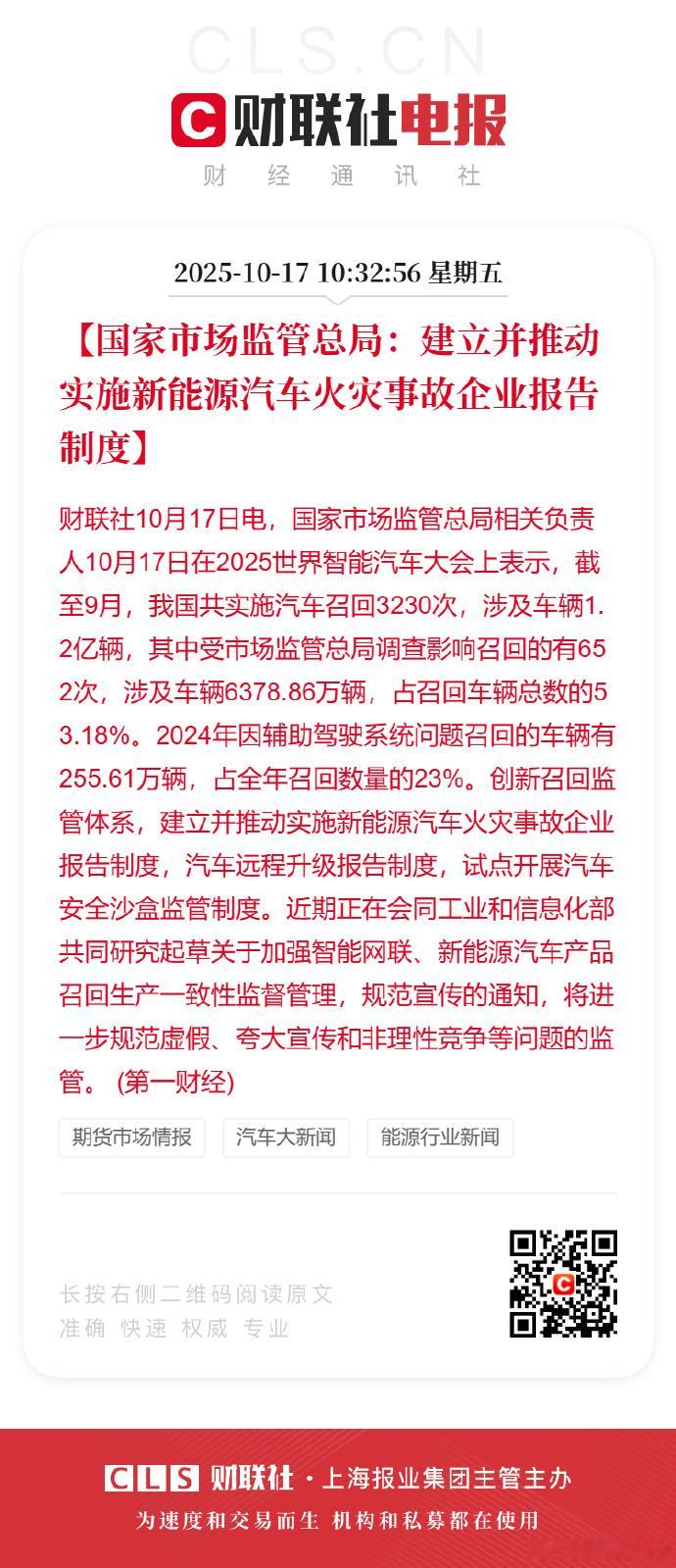 好了,机械门把手之后,市场总局要正式建立电动起火报告制度,估计后面每家起火都得打