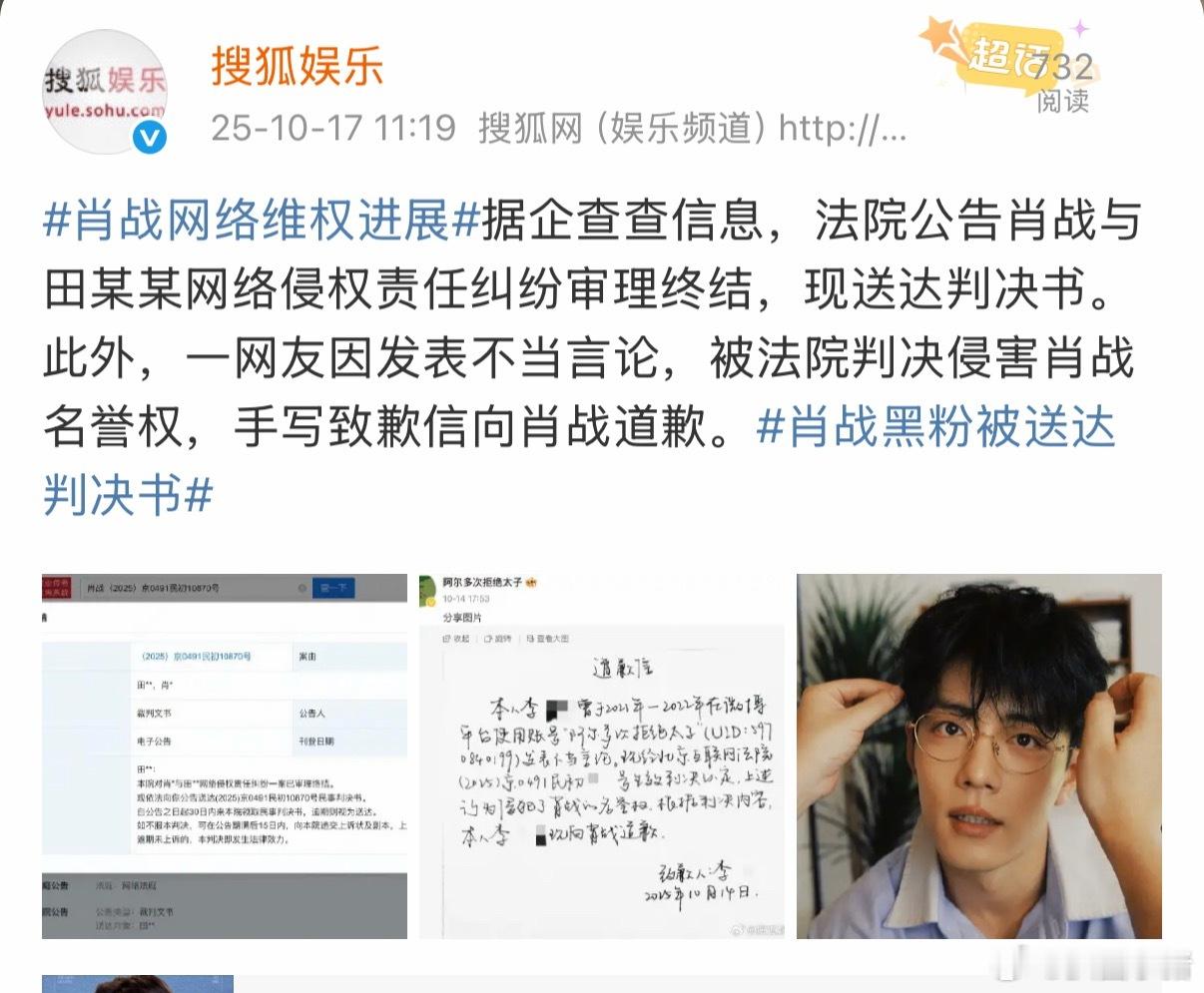 肖战网络维权进展,黑粉被送达判决书!