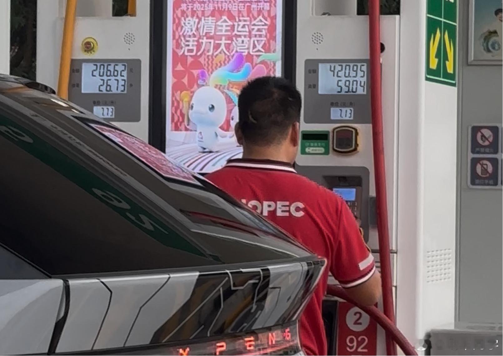 小鹏 X9 增程版加 92 号汽油,测试车实锤了。图2 可以看到加了 59L 的油。