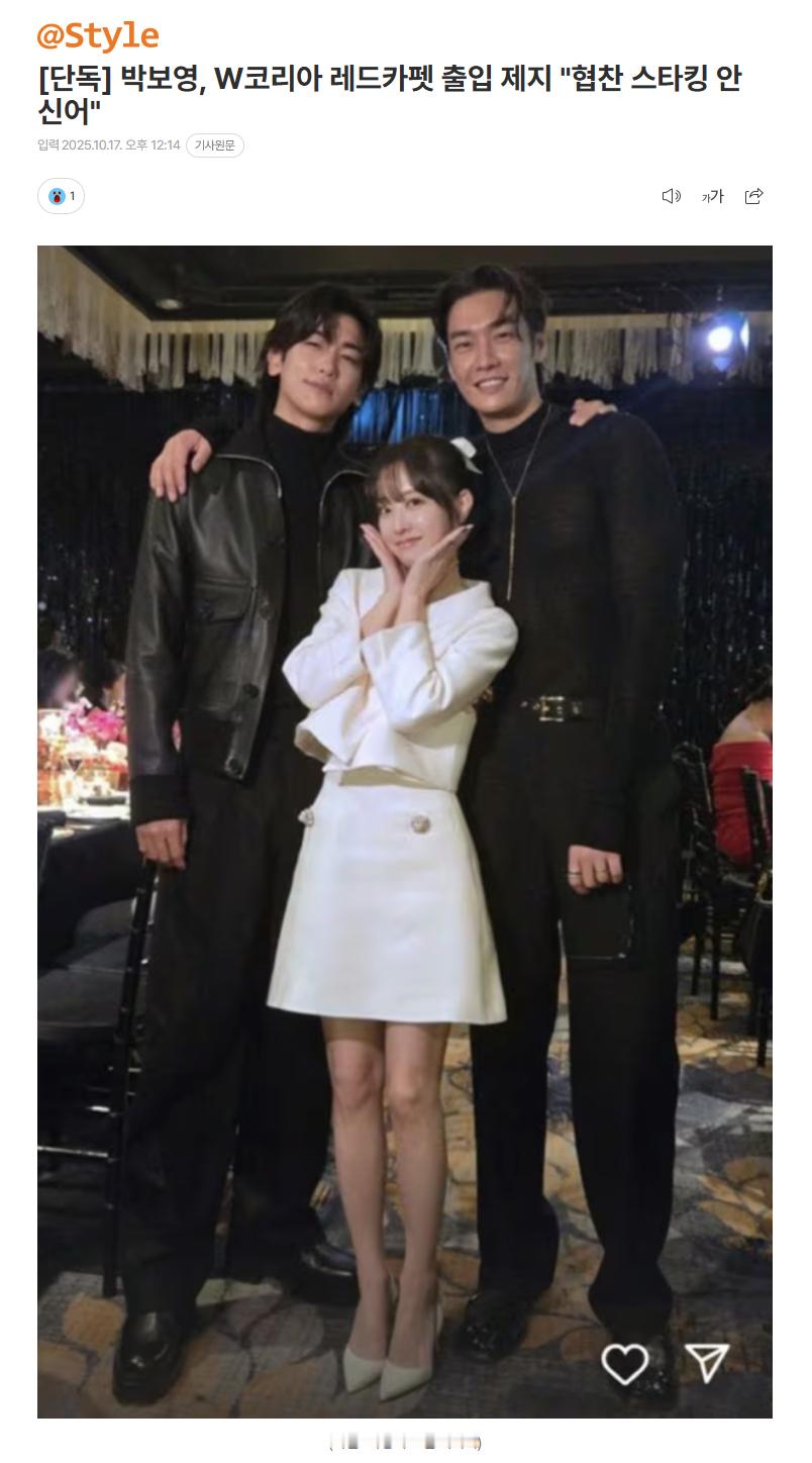 曾被W Korea媒体墙禁止入场事件的当事人确认为演员朴宝英。