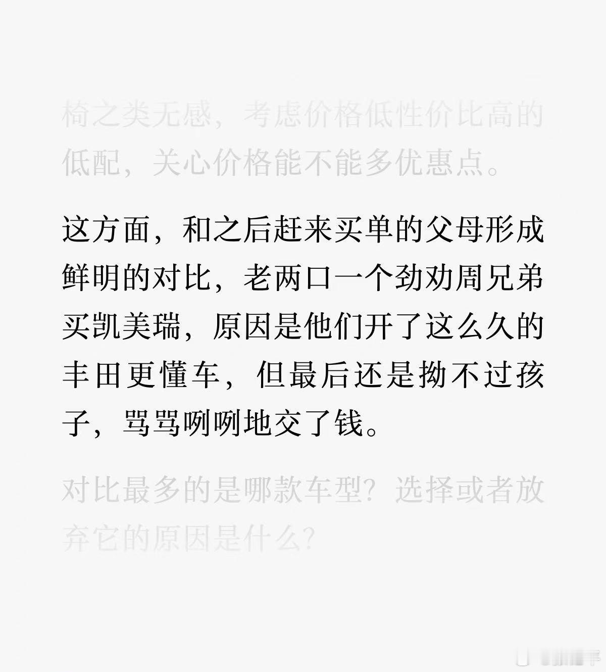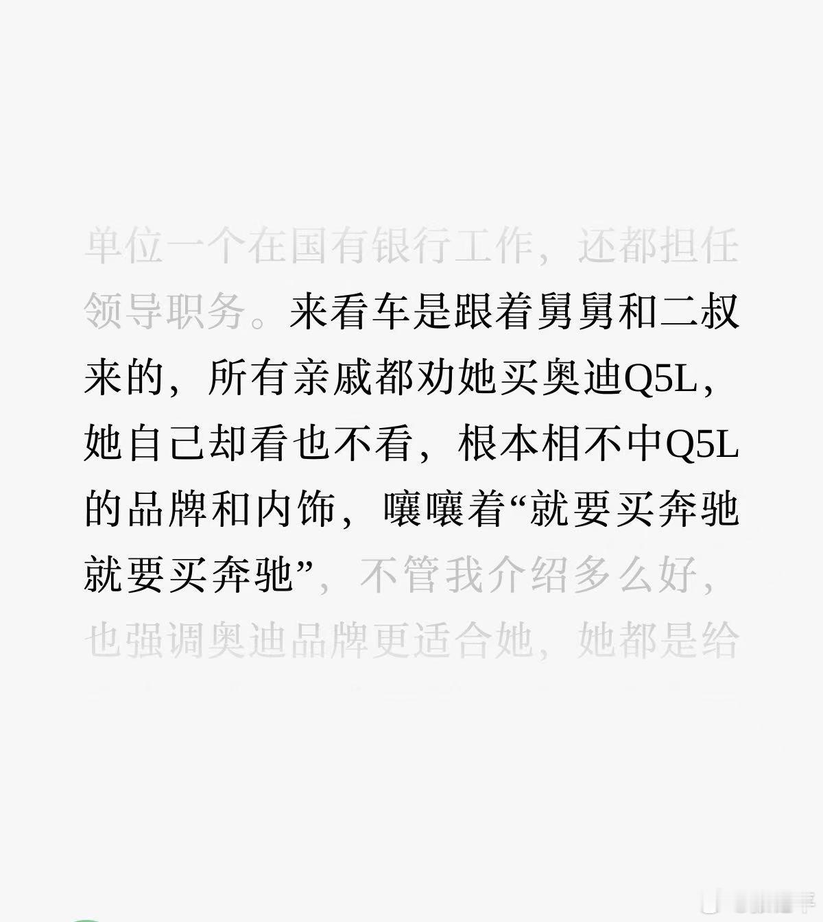 由于认识很多不同品牌的销售,用户案例我这里可太多了。有父母带孩子看车,15万想买传统油车但孩子不听劝的,觉得这个价位新能源体验更好。也有花三四十万买台车,被身边朋友质疑这个价位为啥不买BBA的。看似是不听劝的案例,但其实也是新观念和旧观念的碰撞。