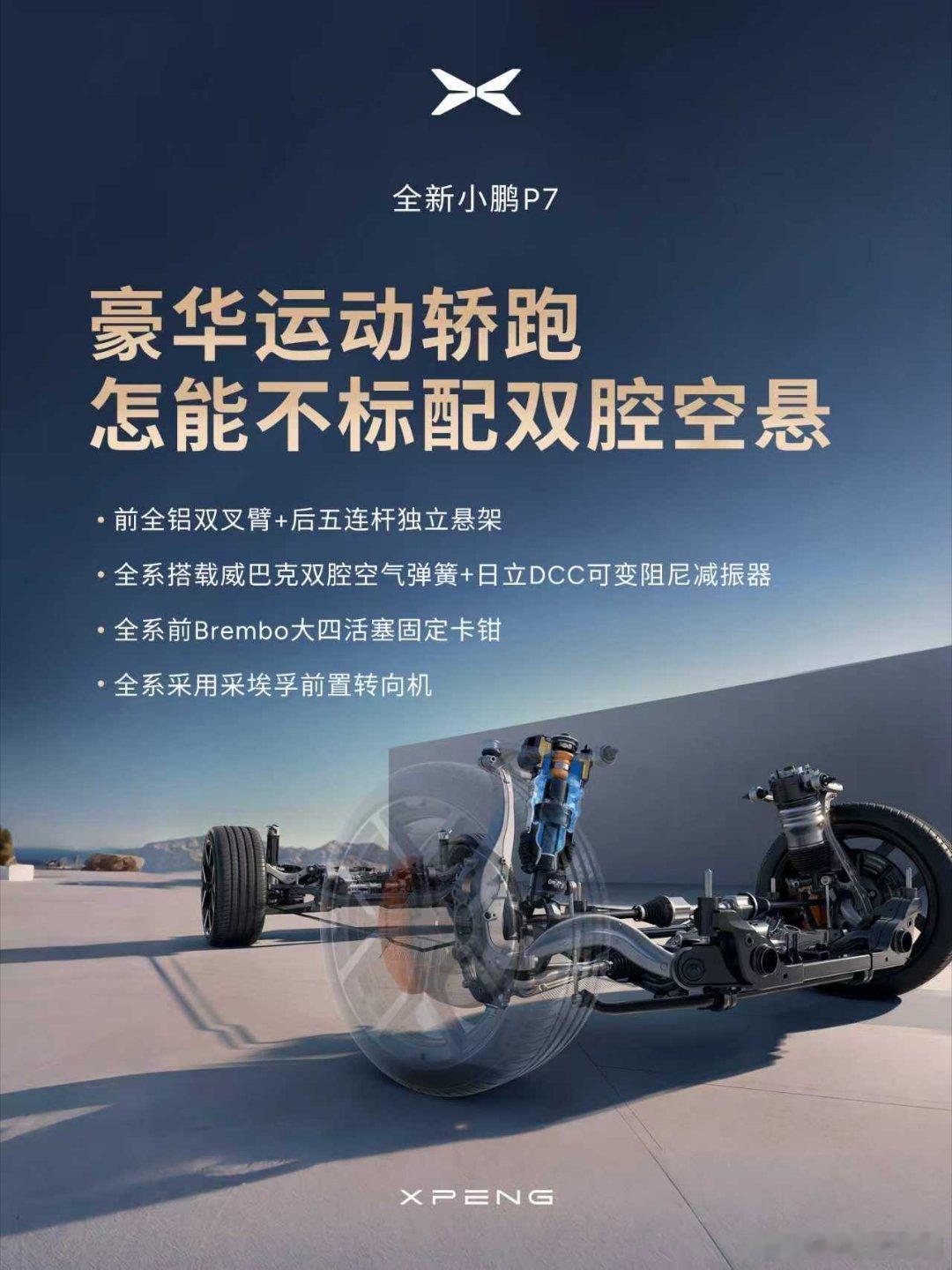 为什么全新小鹏P7可以麋鹿测试90公里通过,还能扛住连续26脚百公里紧急刹停,第三方底盘拆解发现,全新小鹏P7同级唯一标配威巴克双腔空悬,整车应用48.7%的铝合金材料,车身轻且刚性足。同时,全系标配了同级最厚的刹车盘,全系标配brembo刹车卡钳,保障了不同工况下的刹车稳定性。且整车的NVH细节处理精益求精,让车开得快,刹得稳,很安静!小鹏P7底盘顶级用料是降维打击