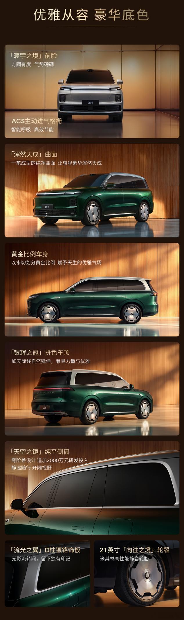 再说说日常用得到的设计,D19是车长超5米2、轴距超3米的全尺寸SUV,停在揽胜、迈巴赫旁边也不落下风。为了追求低风阻和豪华质感,侧窗用了零阶差设计,光这一项就额外投入2000万元。它有个AGS主动进气格栅,跑高速时会自动调节开合度,既能降低风阻省点电,冬天还能帮电池保温,21寸的大饼轮毂一装,整车气场直接上来了,停在路边不比那些豪华SUV差。