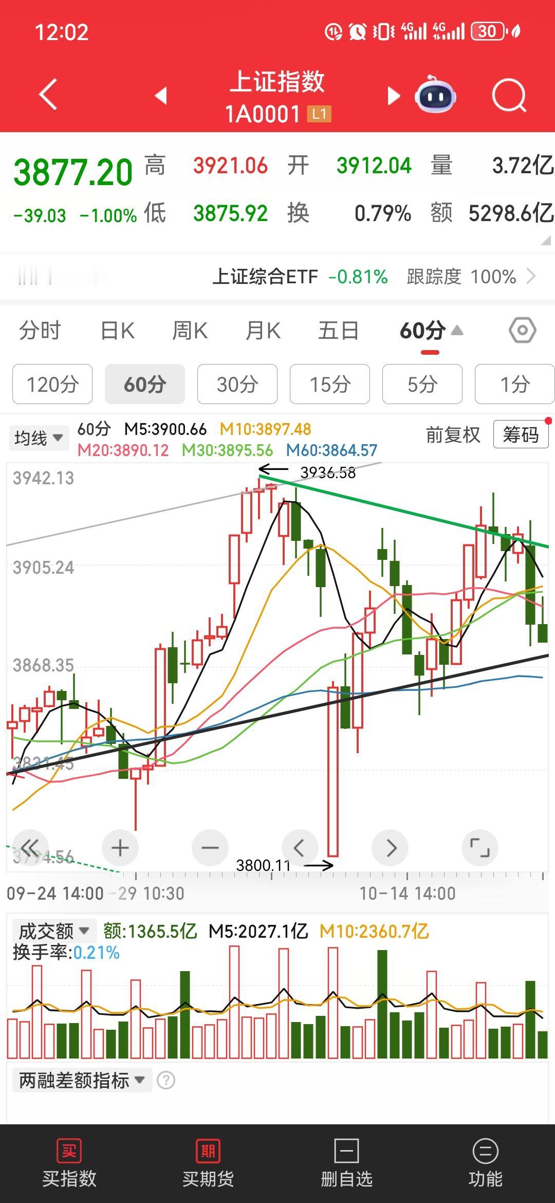 关注下午能不能守住3865点一线 上午我说了上证指数应该守住3865点一线,否