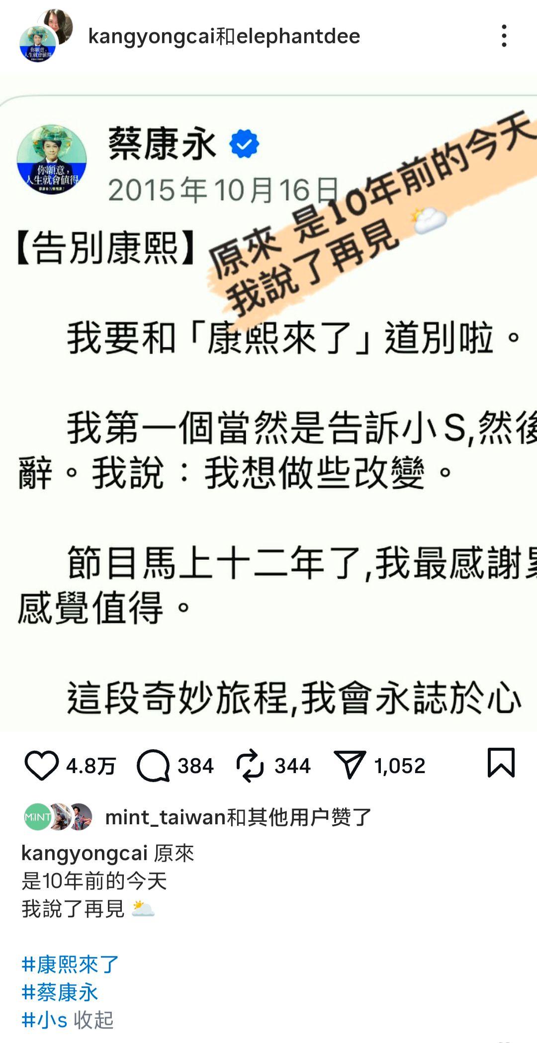 两人今晚将在金钟奖合体台娱蔡康永小s
