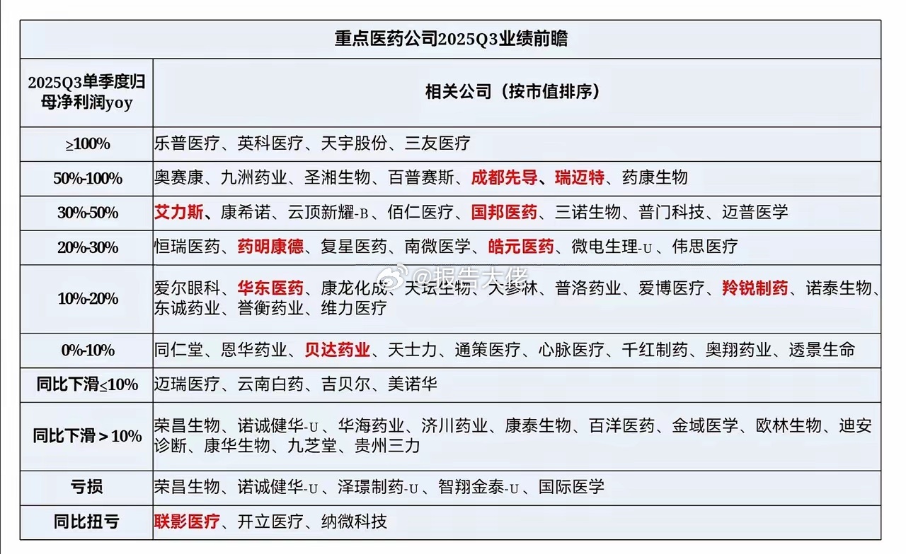 重点医药公司2025Q3业绩前瞻: