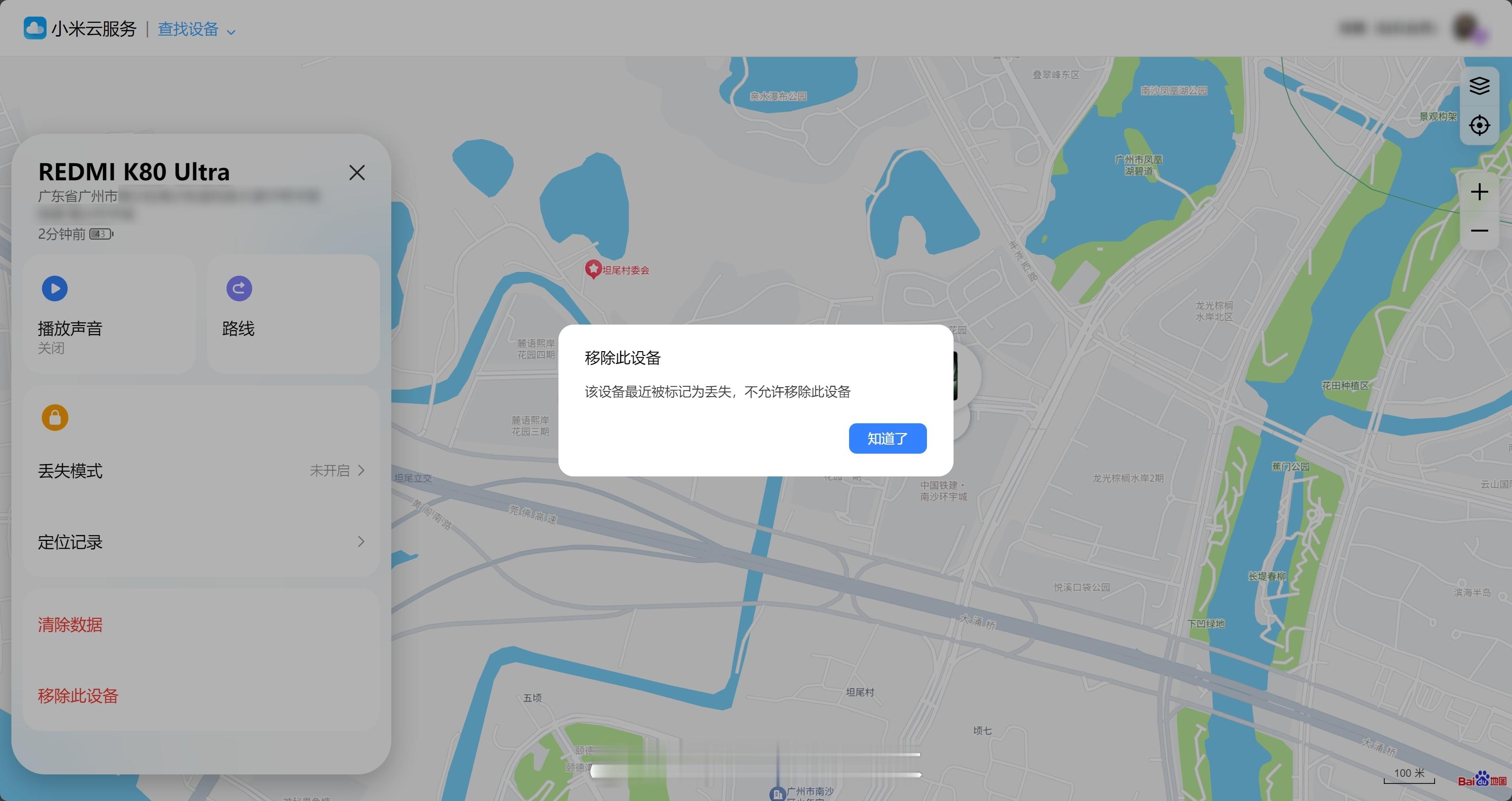 小米澎湃OS3 开启“丢失模式”后三天内不能关闭查找手机。