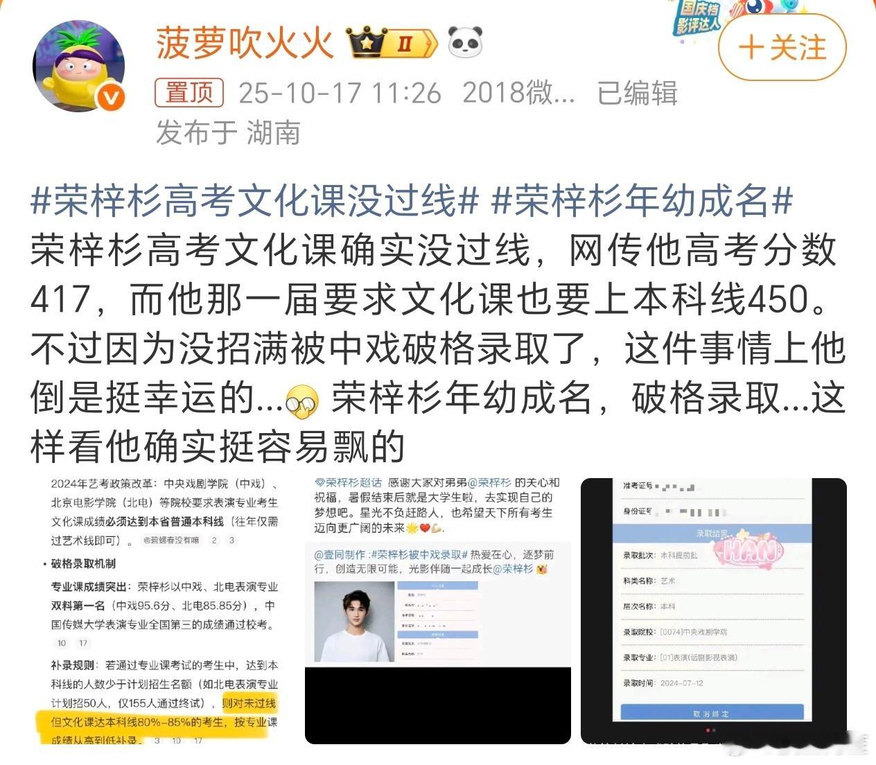 内娱这些明星学渣占比95%,连本科大学都是录不满需要破格往下录取,更别提那些演艺类中职毕业的了……他们到底能读懂剧本吗?连背别人采访都背不下来[二哈]荣梓杉高考文化课没过线