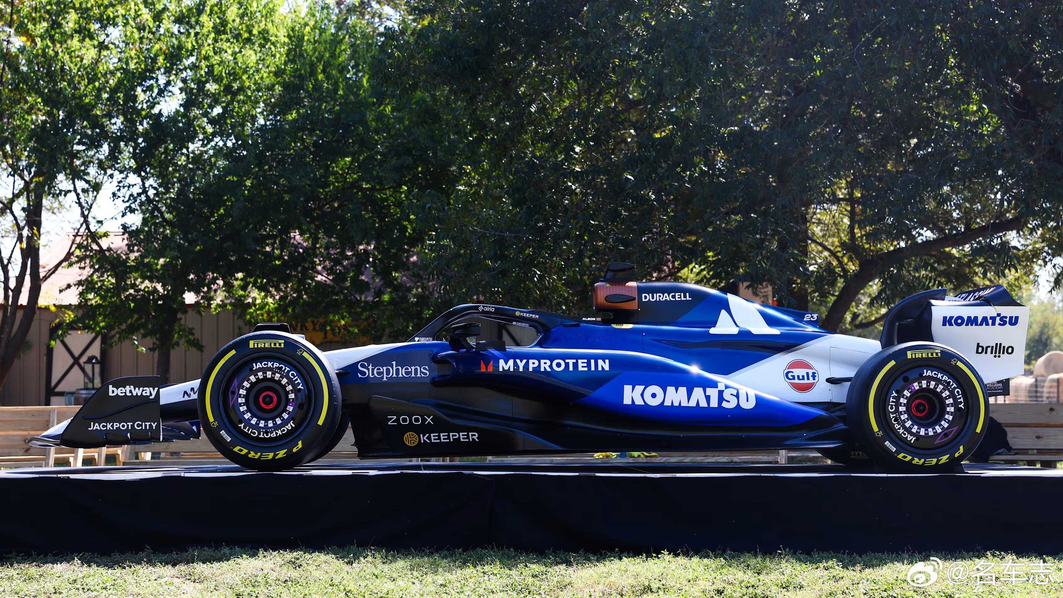 · 威廉姆斯直接梦回 2002,致敬当年涂装还联动 title partner Atlassian(那年可是阿斯顿·马丁成立之年),蒙托亚亲自揭幕;