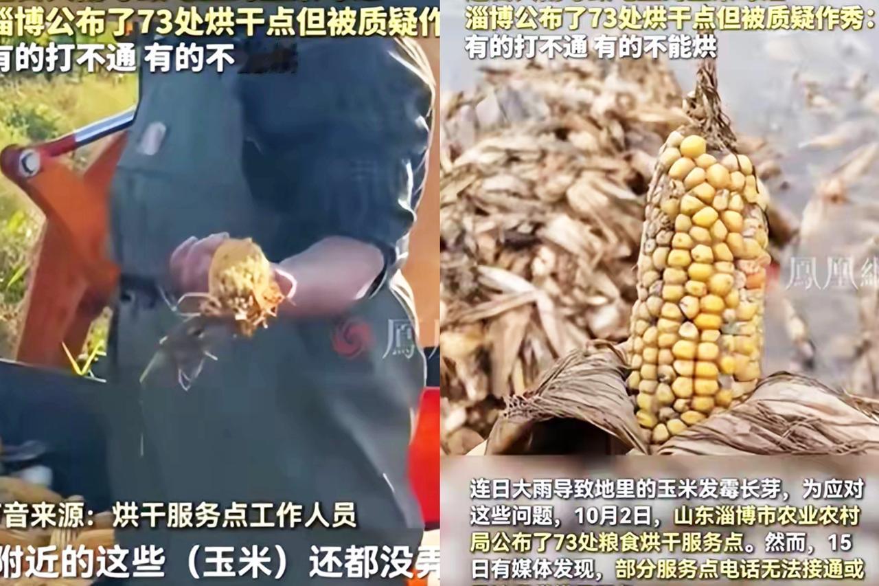 淄博73处玉米烘干点,却被质疑作秀,网友:补贴都去哪里了? 玉米泡在雨里发霉