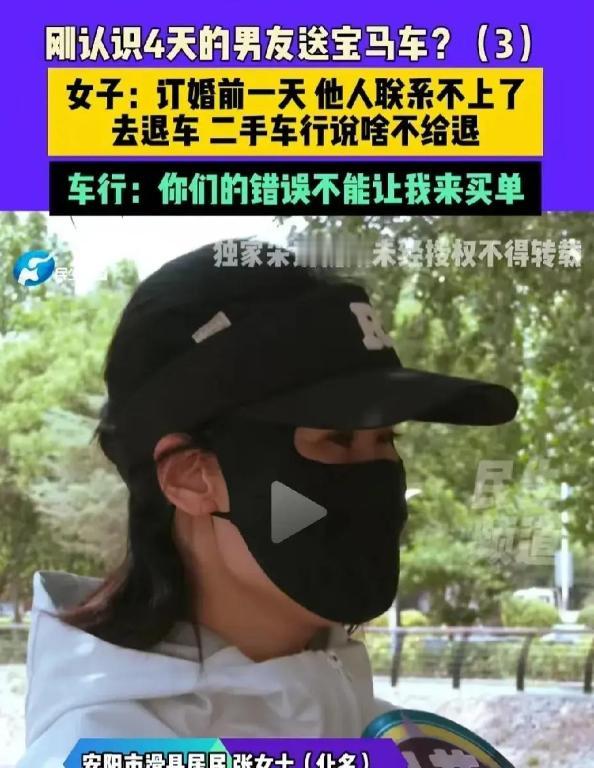 太离谱了!河南安阳,41岁离异带娃女子,与男子相亲仅4天,对方竟送宝马车示爱,并承诺给26万彩礼。女子以为遇到霸道总裁,谁料,订婚前一天,男子突然失踪了! 今年5月份,在河南安阳,张女士通过媒人介绍认识了陈斌,一个看似真诚的男子,刚刚认识几天,陈斌便向她承诺,愿意送她一辆价值18万的宝马车,这种突然的奢华承诺,打破了她对婚恋的传统看法,让她心动不已。 在几天的交往中,陈斌展示了自己“有房有车”的一面,并说自己征信不太好,无法自己贷款买车,恳求张女士帮忙。 张女士听后没有多想,因为她自己也有类似的信用问题,但陈斌提出可以用她成年女儿的名义办理贷款。 出于信任和对未来的美好幻想,张女士最终同意了陈斌的要求,带着女儿的身份证去银行办理了10万块钱的贷款,款项用于支付宝马车的剩余部分。 更让张女士动心的是,陈斌进一步承诺,自己家里已经准备好了26万的彩礼,还提前购买好了结婚用的五金物品。 听着这些“美好”的承诺,张女士开始幻想着自己即将步入婚姻的殿堂,然而就在订婚的前一天,陈斌突然失联了,电话不接,微信也不回。 经过一段时间的联系,陈斌终于出现,但只留下了“对不起”两个字后,便彻底消失了。 此时张女士才意识到自己可能被骗了,车子没有拿到不说,贷款却已经背上了,之后焦急的她赶忙联系了当初办理贷款的二手车行,想要取消交易并要求退款。 然而车行老板却表示,他们并没有与张女士签订购车合同,所有手续都由陈斌办理,车行并不负责她所遭遇的损失。 张女士翻看了车行的相关材料后才发现,陈斌早在两人认识之前就已经订购了这辆车,这意味着陈斌早已有了预谋。 在车行里,张女士还遇到了陈斌,令她愤怒的是,陈斌对此事丝毫不以为然,甚至露出了一副轻松的表情。 张女士开始怀疑,陈斌可能与车行的工作人员合伙,故意设计了这场骗局,但车行的老板坚称不认识陈斌,并表示他自己也被陈斌骗了,因为陈斌曾以没有车开为由,偷走了车行的另一辆待售车。 最终经过一番调解,车行同意用陈斌交的四万五千元定金作为违约金,将张女士的贷款退还。 虽然这件事没有让张女士完全损失,但她心里的愤怒和不甘却难以平息,这不仅仅是金钱的损失,更多的是对自己判断力和信任的质疑。 这起事件也在网上引发了热议,很多人对这种所谓的“霸道总裁”式的爱情骗局感到震惊,并且有网友透露自己也遇到过类似的事情。 尤其是一些二婚女性,在寻找伴侣的过程中,容易因情感需求过于强烈而放松了警惕,最终成为骗子的目标。 的确,这种形式的婚恋诈骗屡见不鲜,许多骗子专门盯上了想要重组家庭的中老年人,利用其孤独和急于结婚的心理,以快速追求和承诺豪车、彩礼等物质条件来拉近关系,最终骗取钱财。 专家也指出,婚恋中的财务往来确实需要格外小心,尤其是在遇到大额交易时,要务必核实对方的信用状况、财产来源以及交易的合法性,不要因为情感冲动做出轻率的决定。 像这类骗局,表面上看似浪漫和美好,实则充满了陷阱,张女士的遭遇就是最好的例子,提醒大家在婚恋中要保持理性,特别是在涉及钱财时,必须谨慎行事。 这起事件的发生,也为社会敲响了警钟,随着网络婚恋平台的普及,诈骗分子更加容易通过虚假的身份和承诺迅速获取受害人的信任。 对于参与者来说,不仅仅是为了自身利益而做出谨慎选择,更要尊重自己的情感需求,保持清醒的头脑,避免让自己陷入这种虚假的美好之中。 特别是在涉及钱财时,决不能轻易让步,一定要保持高度的警惕,避免让不良分子趁虚而入。 总体来看,张女士的这段经历是对社会中越来越多婚恋诈骗案件的一次提醒,天上不会掉馅饼,尤其是那些短时间内承诺大额物质交换的婚恋对象,往往充满了各种不确定性和风险。 大家要学会理性看待每一段感情,特别是在遇到涉及金钱交易时,要做到心中有数,防止上当受骗,最终导致不可挽回的损失。 对于这件事情,大家有什么看法?