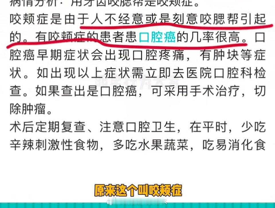 咬嘴口腔癌因为她跟槟榔的区别就是一个快一个慢,反反复复的口腔溃疡不去管就会造成