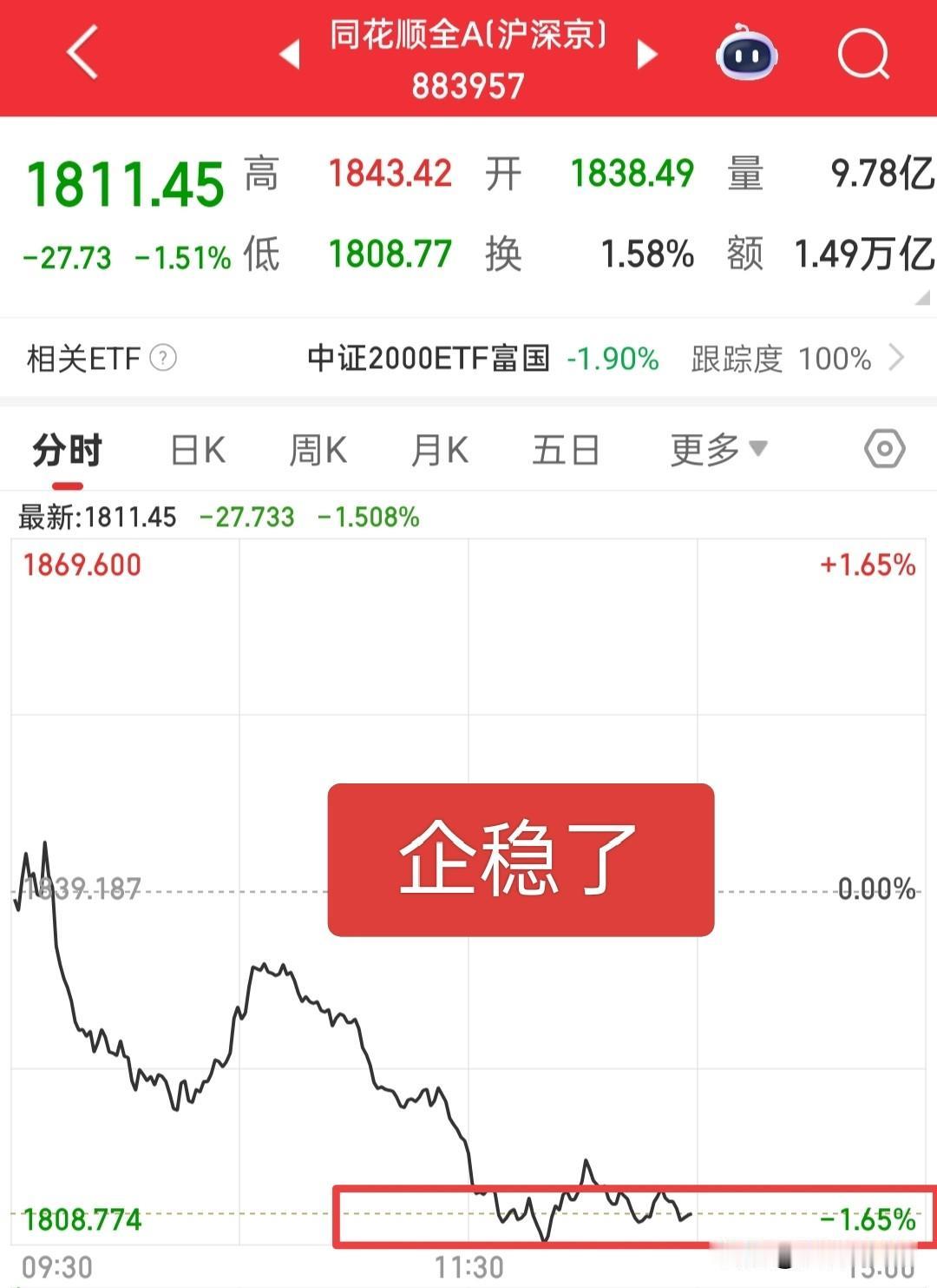 今天安全了,全A已经止跌了,所以今天就不要再担心跳水了,如果管不住手,这个时候拿