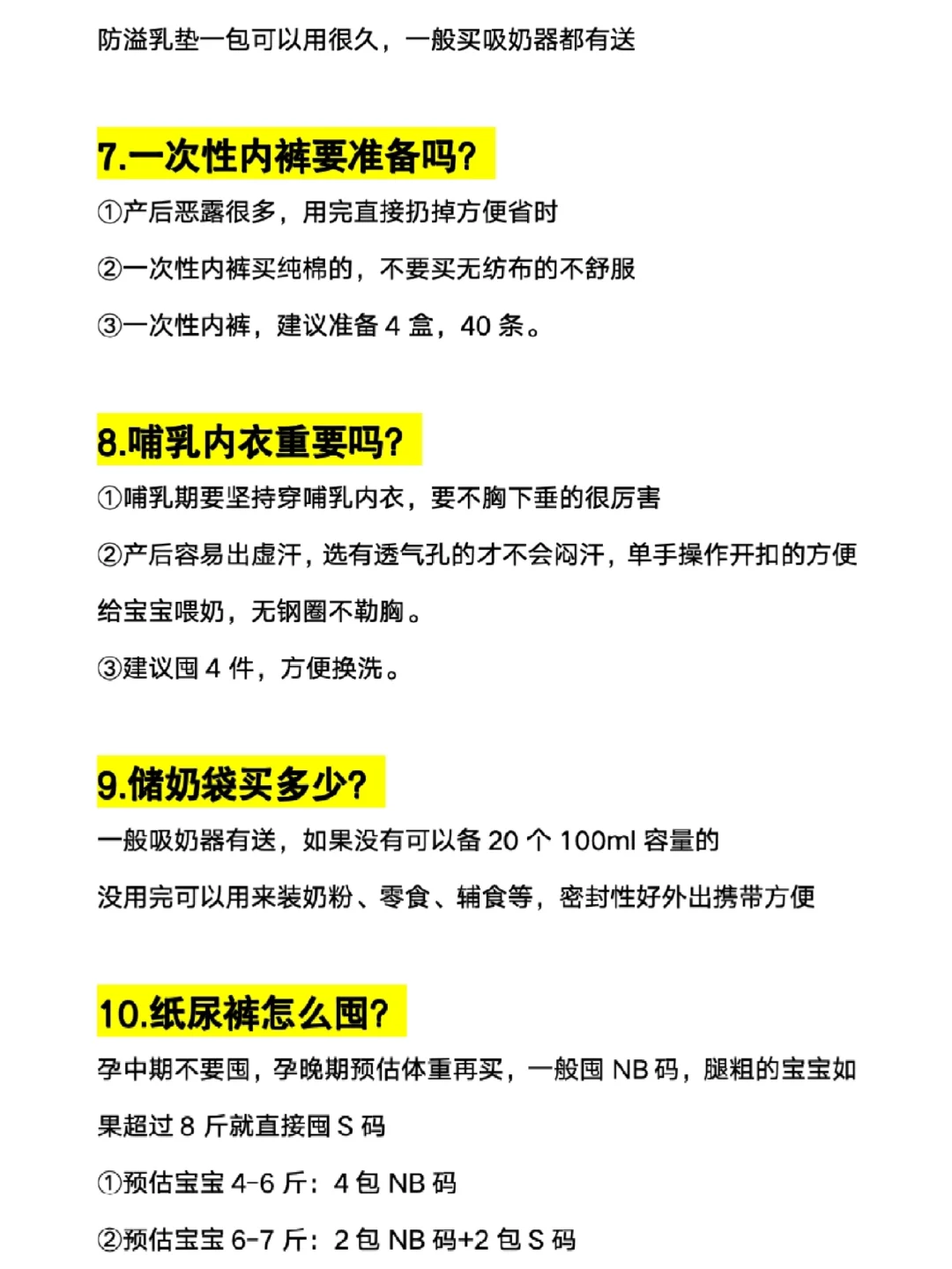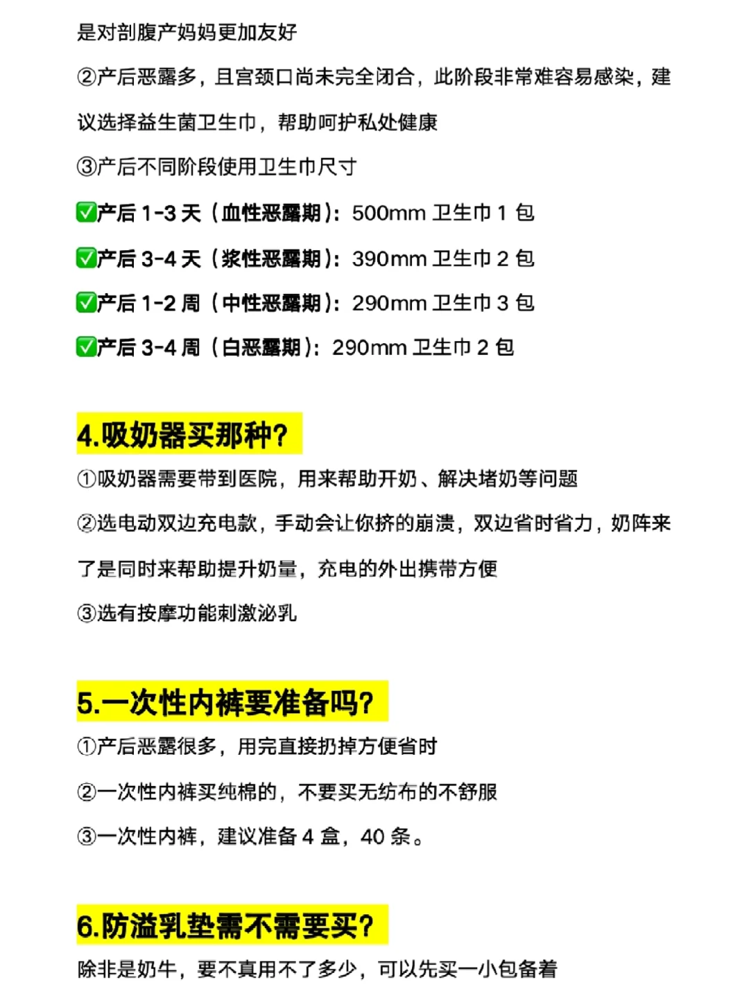 ✅妈妈需要准备的:产褥垫、产妇卫生巾、一次性内裤、吸管杯、哺乳内衣、月子服、防溢乳垫、储奶袋等