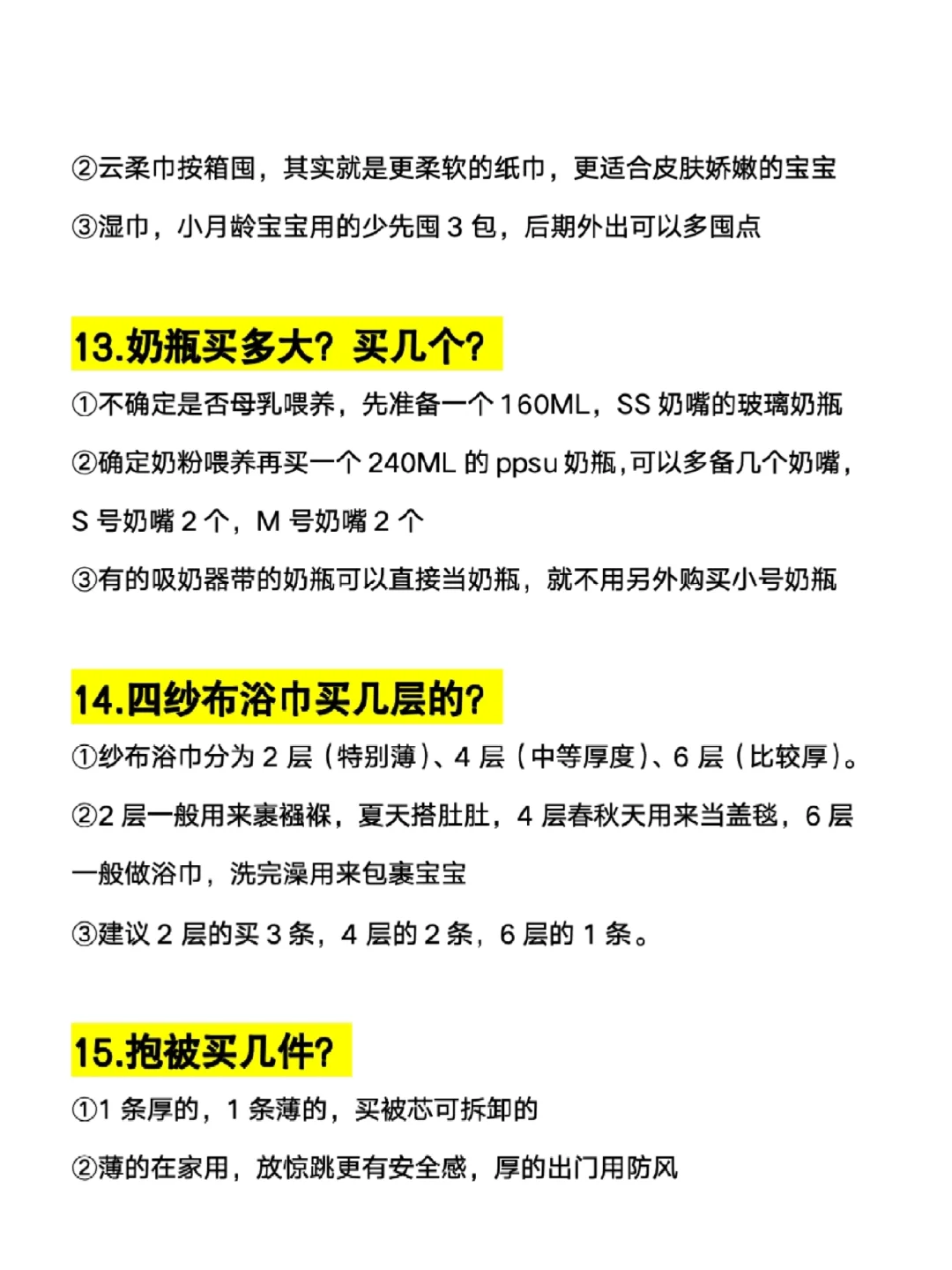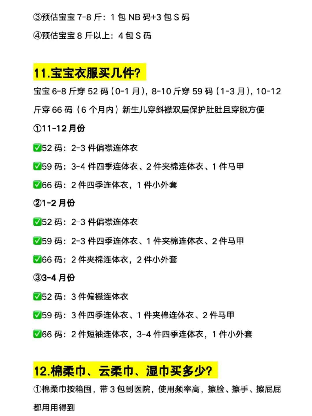 ✅宝宝需要准备的:纸尿裤、奶粉、奶瓶、棉柔巾、宝宝衣服、抱被、小方巾、纱布浴巾、隔尿垫、抱被等