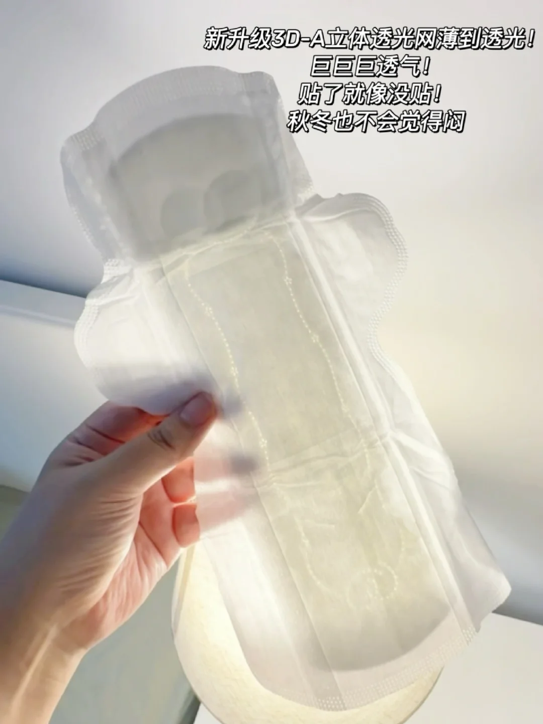 值得一提的是,它不像普通产妇卫生巾,又厚又闷,这款卫生巾用的是[点赞R]升级3D-Air立体透气网,不仅能吸还薄~即使冬天穿的再厚也不会觉得闷!