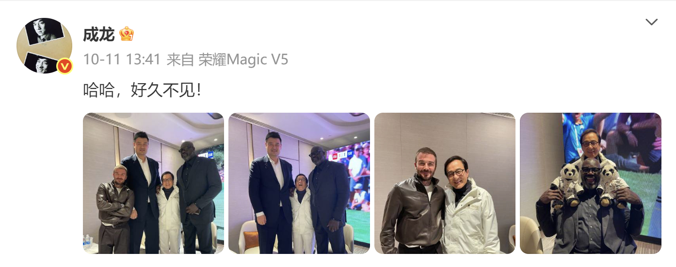 NBA中国赛澳门站最近举办,汇集了体育、娱乐、商界等多领域知名人物,不少明星社交平台都晒出观赛照片。贝克汉姆也更新社媒晒出澳门vlog,视频中龙叔出镜手持荣耀MagicV5和小贝一起挑合照,轻薄大折叠秒变社交神器成龙和贝克汉姆用大折叠挑合照