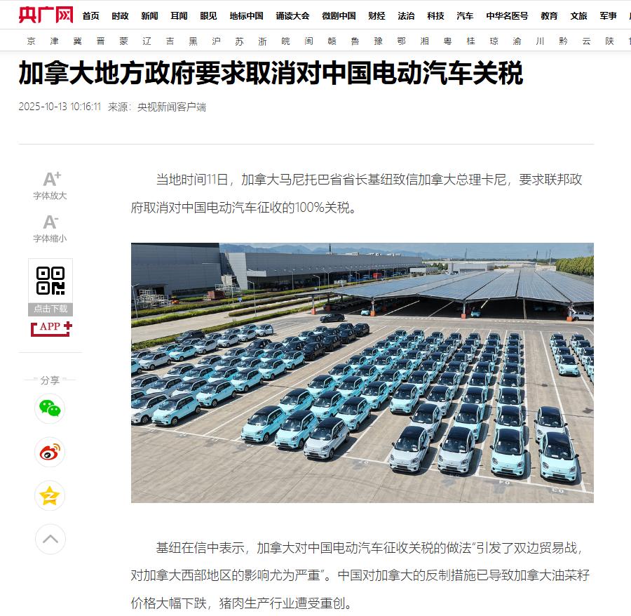 中国等的就是这一天,一旦中加关税战结束,美国将沦为“活靶子”。“中加关税战”要结束了?加拿大外长亲自访华或要与中国商讨“停战”事宜,特朗普即将沦为“孤家寡人”。 加拿大外长阿南德这趟访华,说白了就是给中加关税战踩刹车来的,这事儿不光是中加两国的贸易调整,更透着美国盟友圈要散架的大信号,特朗普想靠关税霸凌拿捏世界的日子,是真要到头了。 这事儿还得从特朗普对中国电动汽车加征100%关税说起,作为美国的“铁杆盟友”,加拿大迅速跟进,对中国电动车祭出同等税率,试图以政治站队换取美国的信任背书。 但中方的反制来得又快又准——8月,商务部依据《对外贸易法》启动全球首例反歧视调查,宣布对加拿大油菜籽征收75.8%反倾销保证金,同时对猪肉、木材等支柱农产品加税。 更具讽刺意味的是,美国转头就对加拿大商品加征35%关税,让这个“跟班”瞬间陷入“两头挨打”的窘境。这场由美国点燃的贸易战火,很快烧到了加拿大自己身上。 这次加拿大主动上门求谈,根源在于国内经济与政治压力已濒临爆发。经济层面,中方反制精准击中了其命门:中国吸纳着加拿大43%的油菜籽出口,年创收高达270亿加元。关税落地首月,萨斯喀彻温省对华油菜籽出口便暴跌76%,温哥华港口很快积压了超130万吨油菜籽,每天光仓储费就耗掉900万加元。 马尼托巴省的猪肉生产商年损失达1900万加元,4万油菜籽种植户人均亏损数万美元,不少农场已走到破产边缘。 更刺眼的是利益失衡:加拿大本土电动车产业仅能提供数百个岗位,而农业直接撑起西部省份的经济根基,这种“丢西瓜捡芝麻”的政策,自然引发强烈反弹。 经济困局很快传导为政治危机。西部省份率先扛起反抗大旗:萨斯喀彻温省省长莫伊干脆绕过联邦政府,亲自率团赴华寻求订单;马尼托巴省省长基纽直接致信总理卡尼,直言关税正“引发灾难性贸易战”。 地方施压的同时,民意也彻底转向——支持对华电动车关税的比例从63%骤降至44%,近半数民众明确反对。明年就要迎来大选,农业群体作为执政党的核心票仓,其不满情绪直接关乎联邦政府的存续。 雪上加霜的是,澳大利亚正趁机抢占中国油菜籽市场,让加拿大终于看清中国市场的不可替代。多重压力下,阿南德访华前,加拿大农业、车企与地方政府已联名递交“求救信”,她口袋里的出口数据表,实则是产业崩溃的预警书。 而中方提出的“对等取消关税”方案——取消电动车关税即可恢复农产品准入,更给了加拿大顺坡下驴的清晰路径,这也成为访华的直接诱因。 加拿大的转向绝非孤例,美国精心维系的盟友体系正在加速瓦解。欧盟内部早已裂痕丛生,在是否对华电动车征税的问题上,德国、法国等汽车出口大国因担心中方反制,始终坚决反对。 2025年慕安会上,美国副总统万斯对欧洲的指责更让跨大西洋同盟的分歧暴露无遗,而美国对欧洲钢铁、铝产品加征25%关税的做法,进一步寒了盟友的心。墨西哥的动作则更直接,干脆取消对华电动车进口限制,还积极吸引比亚迪建厂。 这种离心趋势,根源在于美国政策的“损人不利己”:特朗普的“美国优先”从未给盟友分利,反而让加拿大安大略省的特斯拉工厂因成本飙升迁至墨西哥,最终导致美国消费者购车成本上涨18%。 投资数据更能说明问题:2025年前三季度中国对北美直接投资增长42%,其中78%流向加拿大和墨西哥,美国仅分得22%,自家后院的盟友早已在悄悄“倒戈”。 加拿大访华的本质,是全球化规律对霸权逻辑的胜利。当关税霸凌逼得盟友经济濒临崩溃、民意强烈反噬,所谓的“反华贸易联盟”便失去了存续的根基。 阿南德此行不仅是为关税战“踩刹车”,更是给美国敲响了警钟:在产业链深度交融的今天,任何违背经济规律的对抗终将自食其果。 随着更多盟友看清利益本质,美国的关税霸权正在加速瓦解,而互利共赢的合作共识,已成为不可逆转的时代潮流。