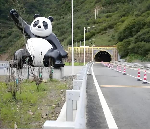 四川高速护栏熊猫图案装置引热议:创意贴合实际才是真:四川九绵高速某段护栏熊猫图案