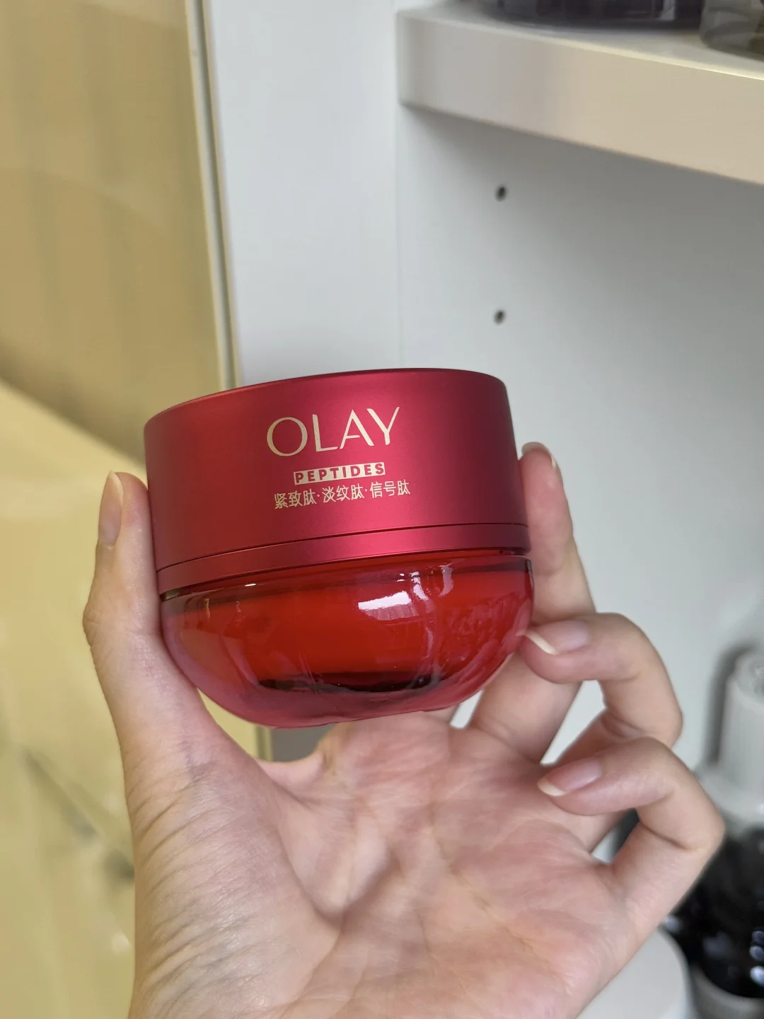 如果几个抗老巨头打群架 本亚洲薄肌一定站队胜肽! 比A醇温和 又比玻色因高效 是普通人最容易上手的抗老路径 但胜肽种类多 水太深 盲买=纵享至尊韭菜 不同厂商做出来的功效质量更是大相径庭! 我的建议是 首选有口皆碑的胜肽大厂 比如研究胜肽50年的OLAY 就拿全新OLAY超红瓶面霜来说 我用完就一个想法 垮脸变得相当紧实! 就很适合想尝试胜肽抗老的姐妹 今天我也顺便聊聊大家关心超红瓶的几点 1. 超红瓶的胜肽优势? 胜肽是出了名的难吸收 但OLAY家的胜肽是可以无脑冲的 毕竟花了半个世纪去做深入的研究 今年新升级的第五代在胜肽上也是猛猛迭代 超红瓶七重胜肽里的紧致肽 直接让胜肽透皮吸收率提高到134% 起效速度远超普通胜肽 从绿皮火车化身直升飞机!! 这也是能让脸火速紧致淡纹的原因! 一边猛猛帮助补充13种胶原蛋白 一边把兜住肌底的蛋白网织的更紧密 脸想垮纹路想长出来都挺难… 2.适合什么人群? 25+有抗老需求的姐妹都可以看看 它有两个质地版本 干皮适合滋润版 油皮适合清润版 干皮/油皮都可以按需来选 普适性很强 上脸一抹化水 吸收完皮肤不会冒油光 润润软软的一点都不黏腻! 怕上脸闷痘黏腻的油皮、混油皮们都可以放心用 干皮或是混干的就可以试试滋润版 尤其是秋冬季节皮肤更加干燥的时候 用了它,一整天都能保持皮肤水水润润! 3.多久能看到效果? OLAY的超真实科学真人实证是 在28天会到达一个巅峰 当然效果肯定是因人而异 因为每个人的皮肤状态/新陈代谢速度/皮肤吸收能力都不一样 我就说我自己用下来的感觉吧 坚持用下来皮肤会有种没熬过夜的美! 下颌线以及边边角角的轮廓 都紧紧的贴着骨肉 垂下的苹果肌也被提溜起来了 纹路淡了后脸比之前更平整更精致 不得不说,OLAY超红瓶真的凭一己之力 拔高了胜肽在我心里的抗老地位!! 如果说胜肽是抗老届不可替代的神 那OLAY超红瓶就是胜肽抗老届的扛把子!