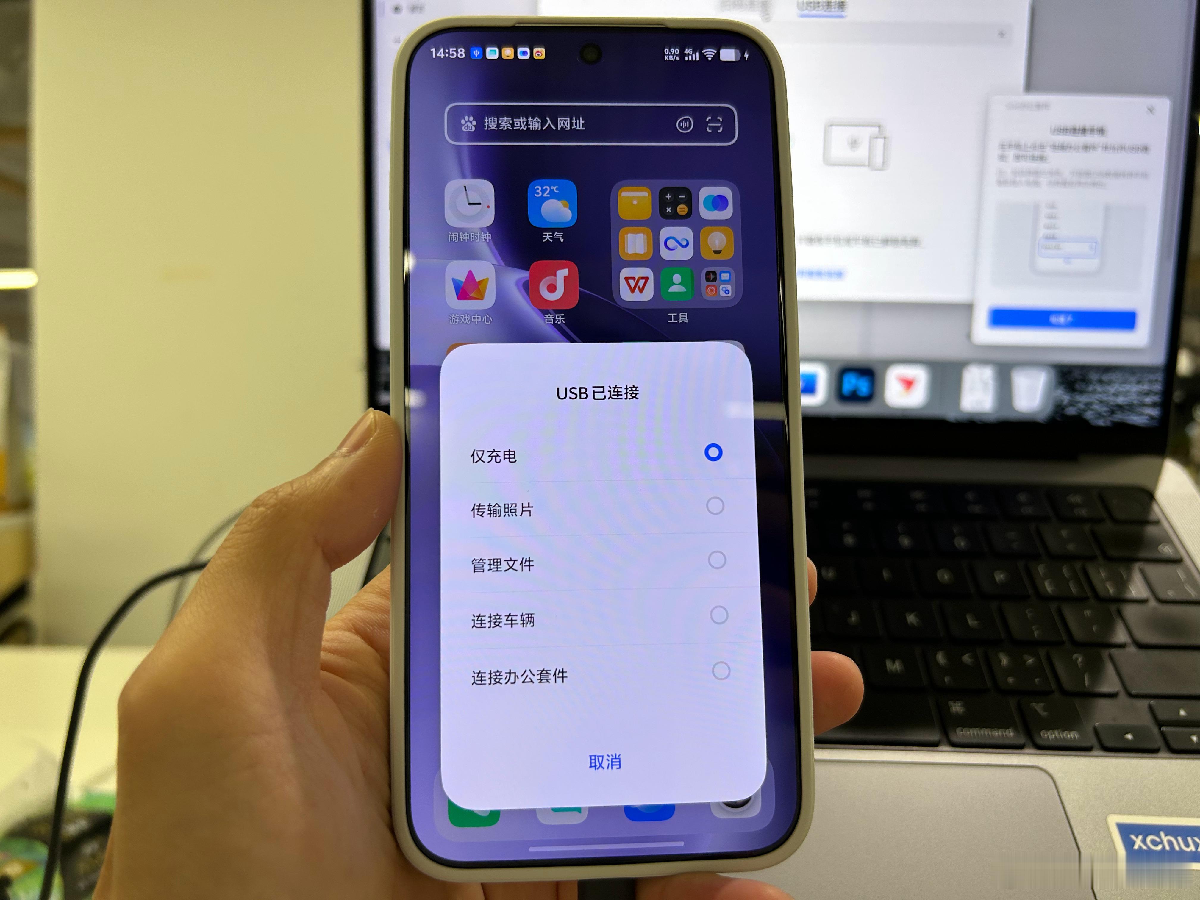 数据线连接 Mac 电脑之后,会自动弹出问你是否安装一个「vivo 办公软件」,这个软件就是连接手机和电脑的关键。