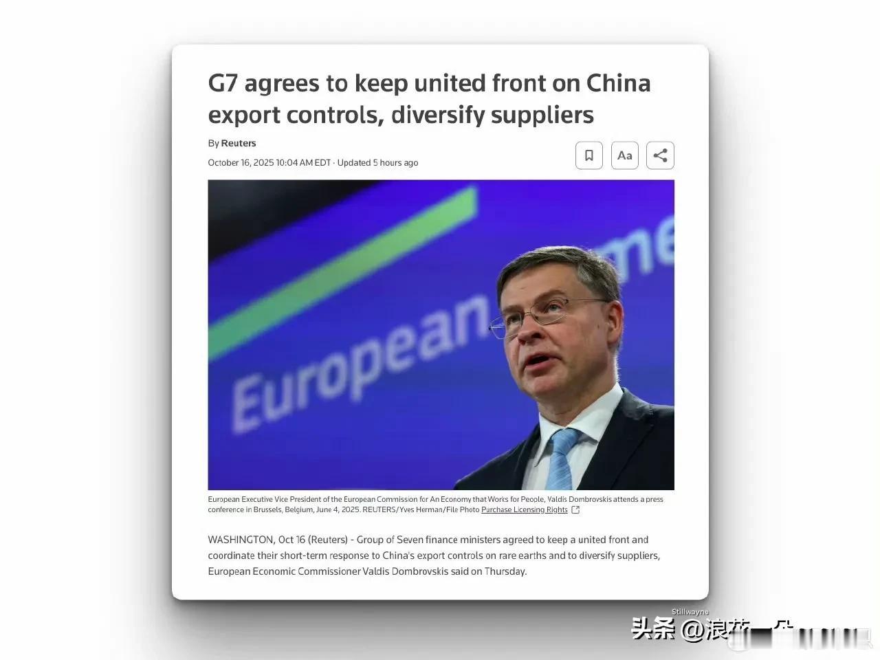 效果有了! 现在已经不是美国一家在喊疼了,七国集团都开始因为稀土问题腰直不起来了? 这不欧洲经济专员东布罗夫斯基表示,七国集团将想办法从多方面寻找稀土资源,以保障自己的工业体系正常运转下去。 这才几天时间呀,就撑不住了,如果管制个一个月两个月,那副情景会很难想象,工人都罢工了怎么办? 所以说,美国违规在先,解铃还须系玲人,七国集团怪就怪美国不遵守贸易规则。
