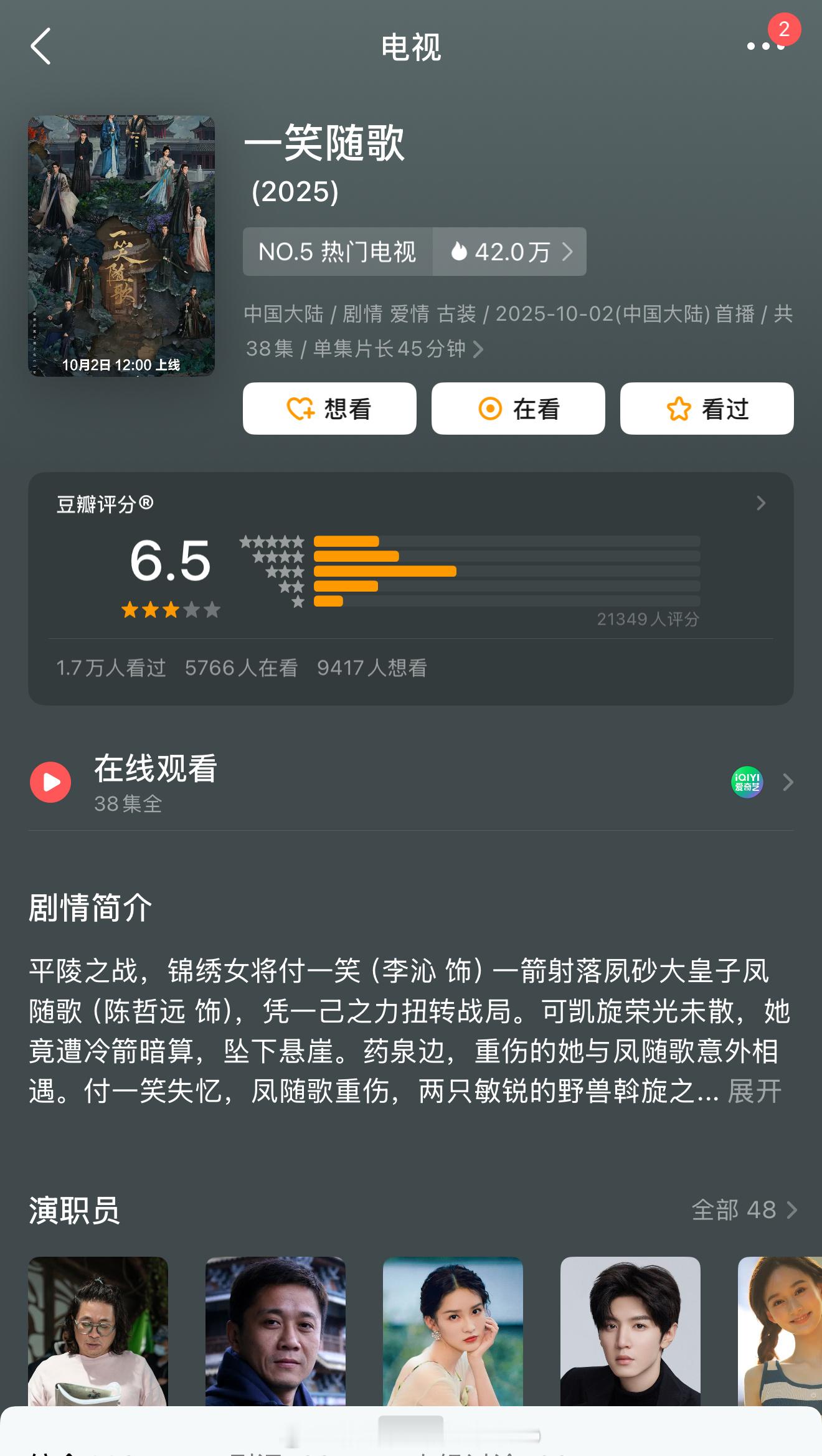 李沁陈哲远《一笑随歌》豆瓣开分6.5分,大家觉得分数符合预期吗??[羞嗒嗒]